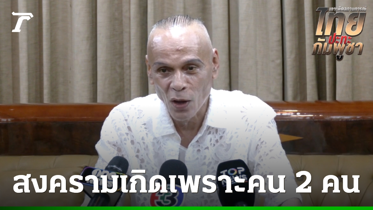 “วันนี้สังคมไทยต้องตระหนักให้ดี สังคมไทยต้องรู้ว่าสงครามเกิดขึ้นเพราะคนสองคน ทำให้บ้านเมืองวุ่นวาย คนสองคนทำให้คนตาย คนสองคนทำให้ชาวบ้านประชาชนต้องอพยพ ไม่ได้ทำมาหากิน เกิดจากคนสองคนไม่ใช่สองประเทศ คนสองคนที่อยู่บนผลประโยชน์ร่วมกัน พอผลประโยชน์ขัดกันก็มีปัญหา แต่เกิดจากคนสองคนภายใต้ผลประโยชน์ใต้เกาะกูด วันนี้ไม่มีใครเอาความจริงออกมาแฉว่าผลประโยชน์ MOU 43 เขตบนดิน MOU 44 เขียนใต้ทะเล ในทะเลมีธรรมชาติที่ราคาแพงมากอยู่ใต้ทะเล มีการแบ่งปันผลประโยชน์กันเอง พอคนสองคนทะเลาะกันเรื่องก็ถูกแฉออกมา แต่สังคมคนไทยไม่รู้ พรรคพวกที่ก่อเหตุก็ไปโทษไอโอ (IO) พยายามเบี่ยงไปกาสิโน ความจริงคือคนละประเด็น”
