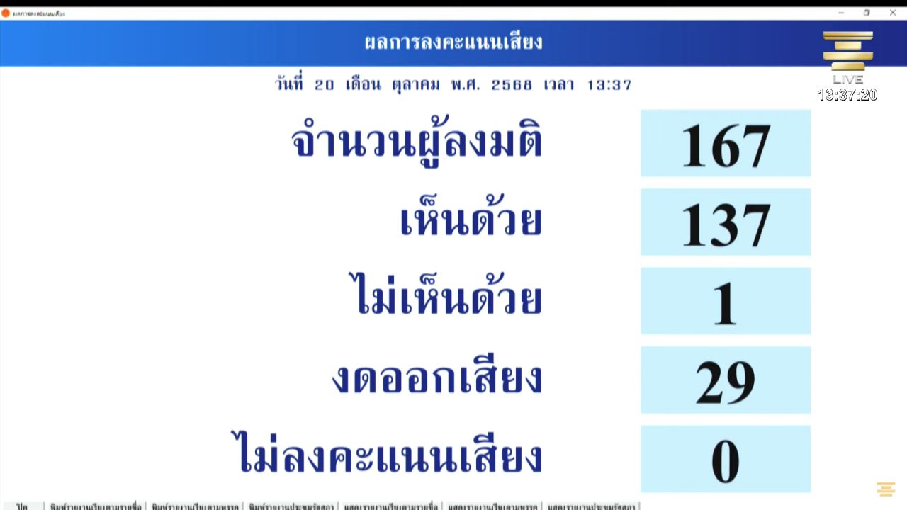 - เห็นชอบ 137 เสียง
