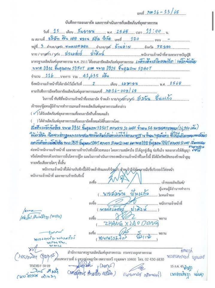 กองที่ถอนอายัด (ผลผ่าน): สมอ. ได้ดำเนินการคืนผลิตภัณฑ์เหล็กข้ออ้อยที่ผ่านการตรวจสอบ