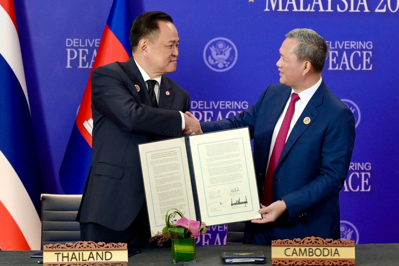 วันที่ 26 ตุลาคม 2568 นายอนุทิน ชาญวีรกูล นายกรัฐมนตรีและรัฐมนตรีว่าการกระทรวงมหาดไทย และ นายฮุน มาเนต นายกรัฐมนตรีกัมพูชา ลงนามถ้อยแถลงผลการพบหารือระหว่างนายกรัฐมนตรีราชอาณาจักรไทยและนายกรัฐมนตรีราชอาณาจักรกัมพูชา โดยมี ดาโต๊ะ ซรี อันวาร์ บิน อิบราฮิม นายกรัฐมนตรีมาเลเซีย และนายโดนัลด์ ทรัมป์ ประธานาธิบดีสหรัฐอเมริกา เป็นสักขีพยาน