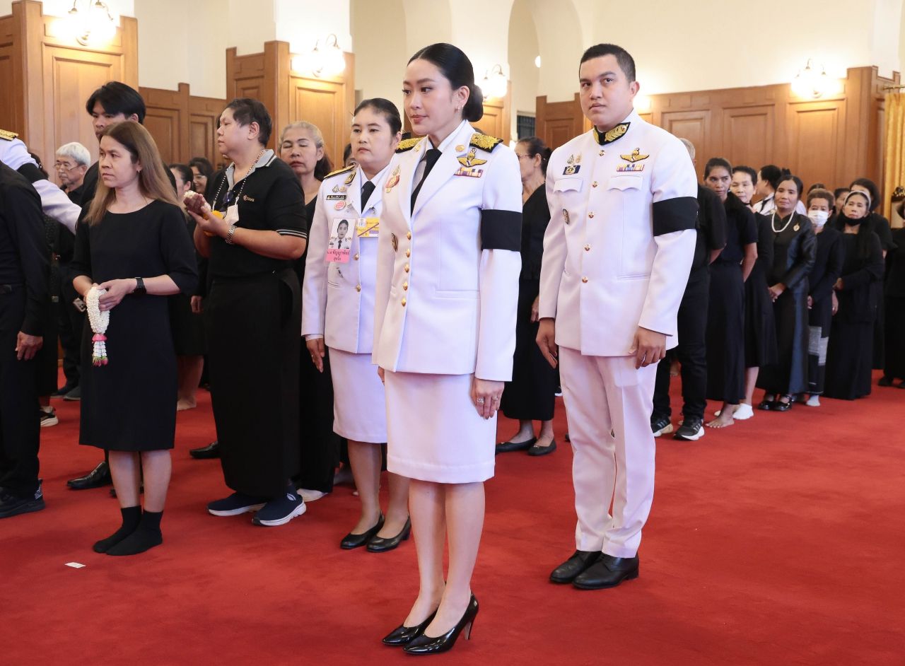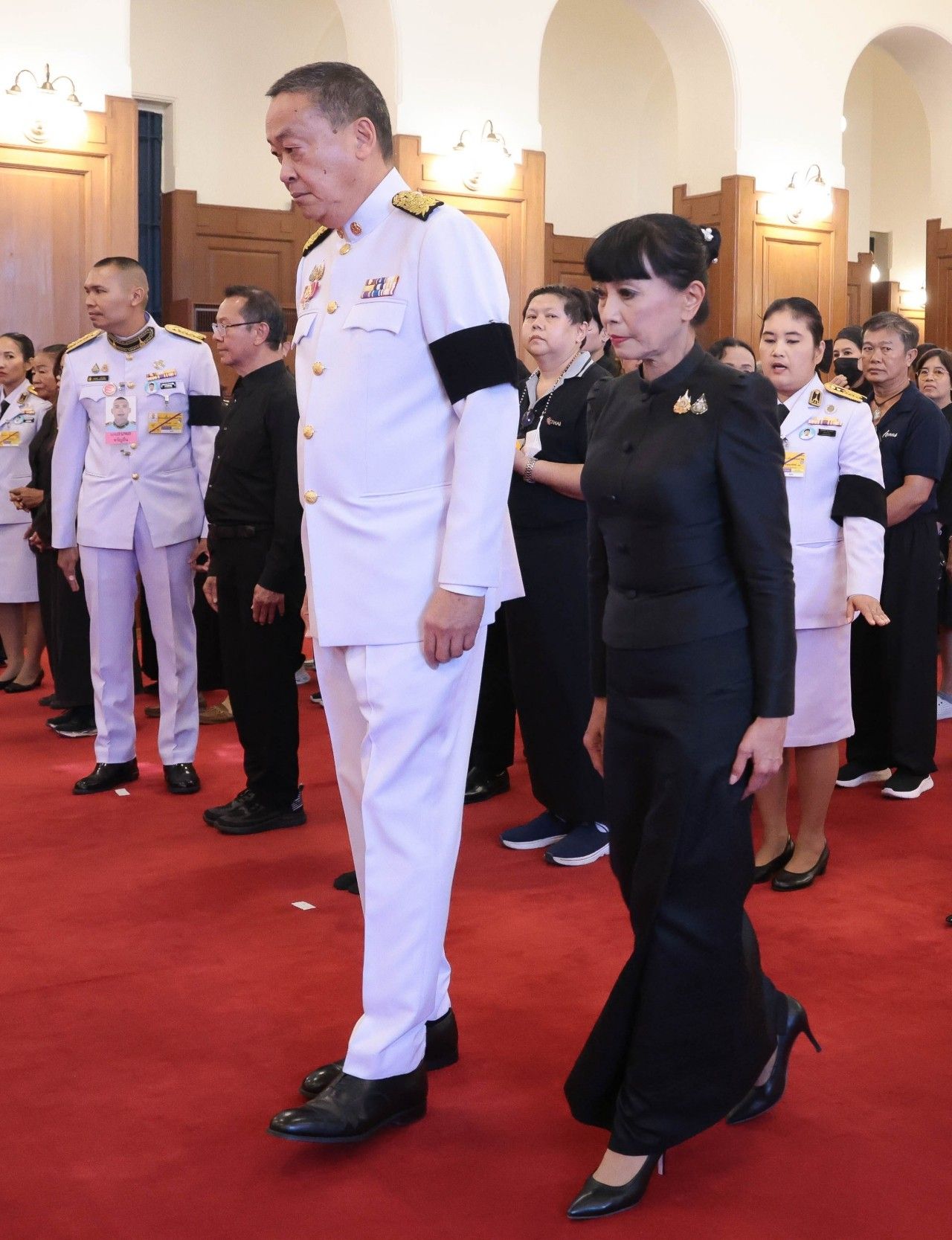 นอกจากนี้ ยังมี นายเศรษฐา ทวีสิน อดีตนายกรัฐมนตรีคนที่ 30 พร้อมคู่สมรส พญ.พักตร์พิไล ทวีสิน รวมถึง น.ส.แพทองธาร ชินวัตร อดีตนายกรัฐมนตรีคนที่ 31 และนายคณาพจน์ โจมฤทธิ์ อดีตคณะทำงานนายกรัฐมนตรี เดินทางมาถวายน้ำสรงพระบรมศพ และลงนามในสมุดหลวงถวายความอาลัยด้วย.