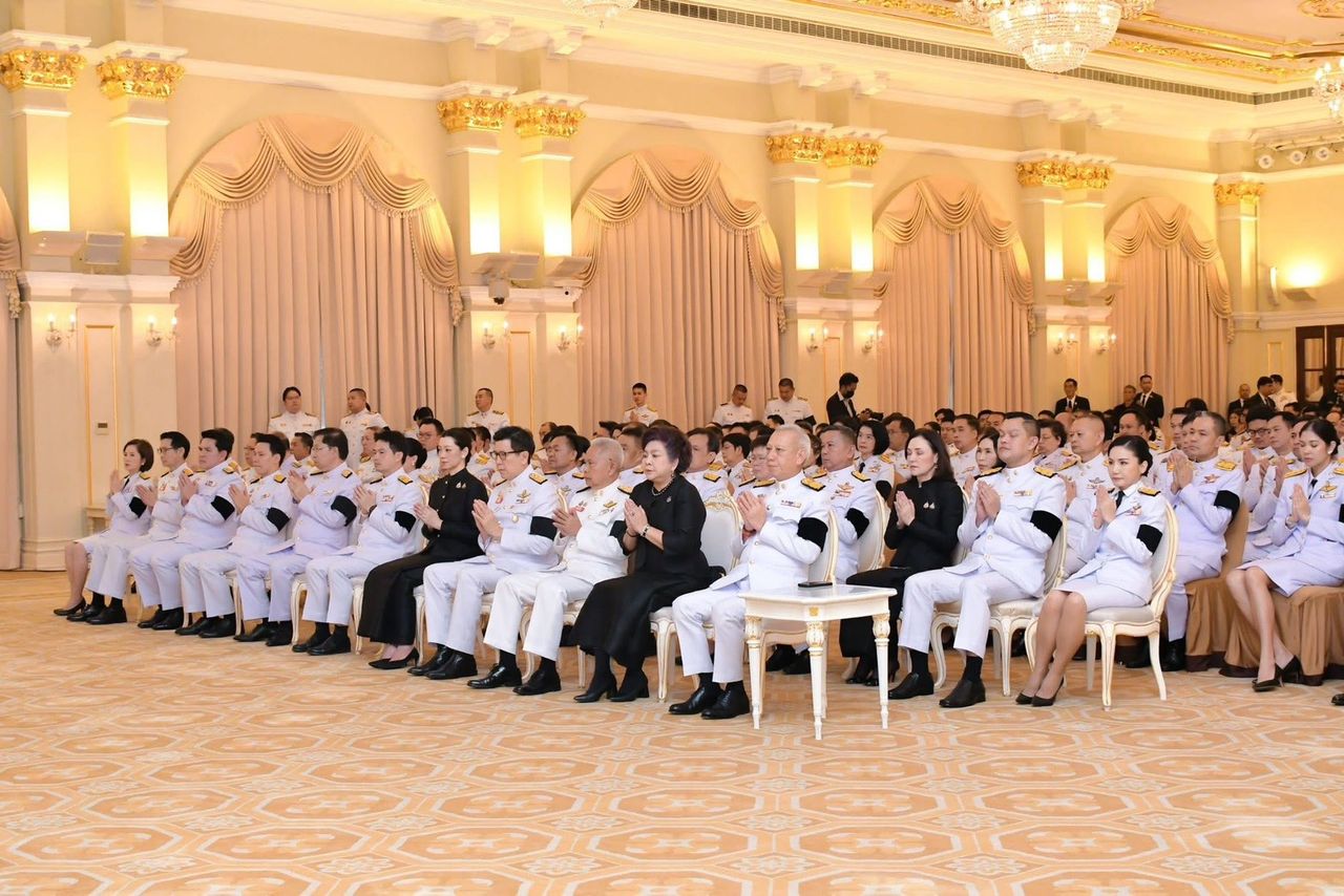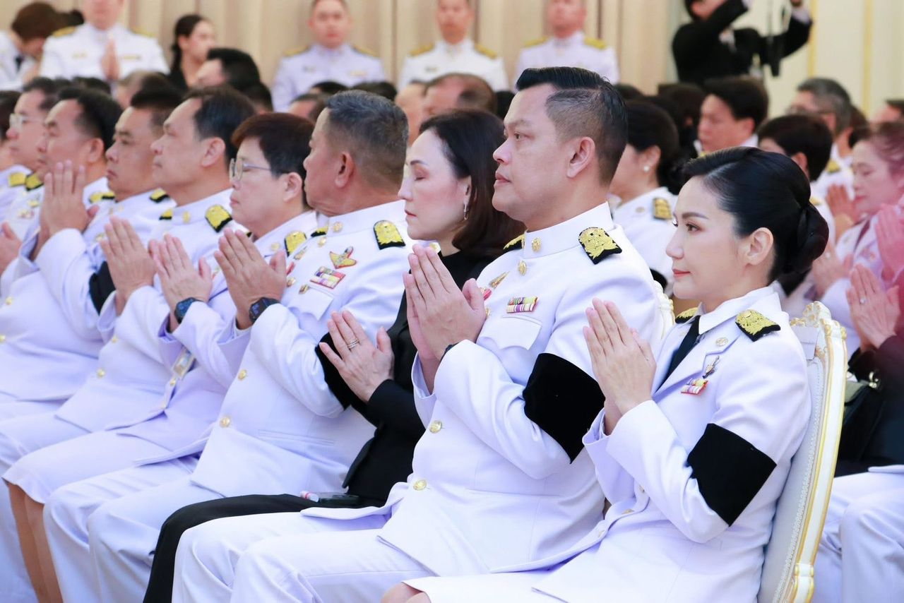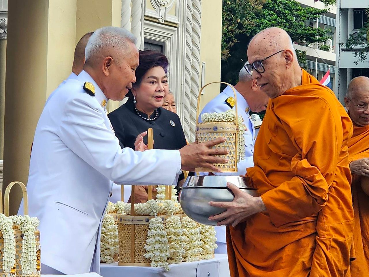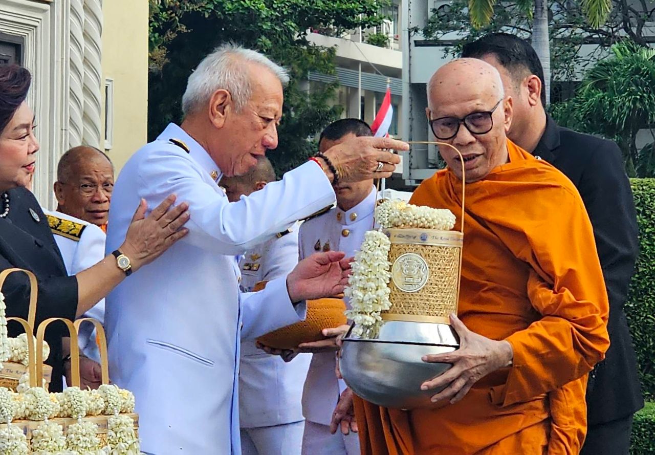 โดยมีคณะรัฐมนตรี (ครม.) หัวหน้าส่วนราชการในสังกัดสำนักนายกรัฐมนตรี ข้าราชการ และเจ้าหน้าที่หน่วยงานในทำเนียบรัฐบาล เข้าร่วมพิธีฯ จากนั้น ได้มีพิธีทำบุญตักบาตรพระสงฆ์ จำนวน 10 รูป ที่หน้าตึกไทยคู่ฟ้า