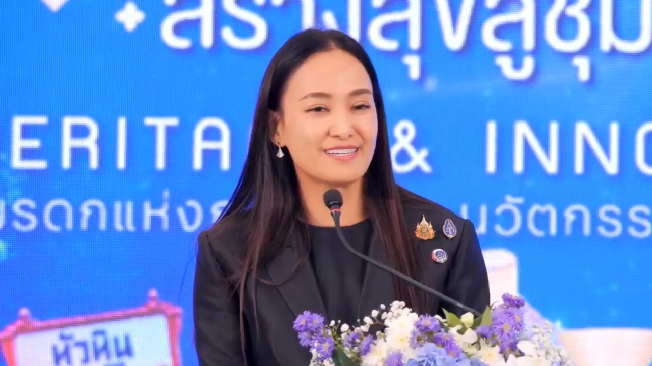 วันที่ 7 พ.ย. 2568 เวลา 13.30 น. ที่ลานด้านข้างศูนย์การค้าบลูพอร์ต หัวหิน อ.หัวหิน จ.ประจวบคีรีขันธ์ น.ส.ศศิธร กิตติธรกุล รมช.มหาดไทย เป็นประธานเปิดงาน “OTOP สร้างสุขสู่ชุมชน” กลุ่มจังหวัดภาคกลางตอนล่าง (สมุทรสาคร สมุทรสงคราม เพชรบุรี และประจวบคีรีขันธ์) ภายใต้แนวคิด “Heritage & Innovation มรดกแห่งภูมิปัญญา นวัตกรรมแห่งอนาคต” โดยมีนายสุรศักดิ์ อักษรกุล อธิบดีกรมการพัฒนาชุมชน นางบุษกร สวัสดิ์แสน ประธานแม่บ้านมหาดไทยจังหวัดประจวบคีรีขันธ์ นายปรีดา สุขใจ รองผู้ว่าราชการจังหวัดประจวบคีรีขันธ์ ผู้นำท้องถิ่น ผู้ประกอบการ ประชาชน และนักท่องเที่ยว ร่วมงานเป็นจำนวนมาก