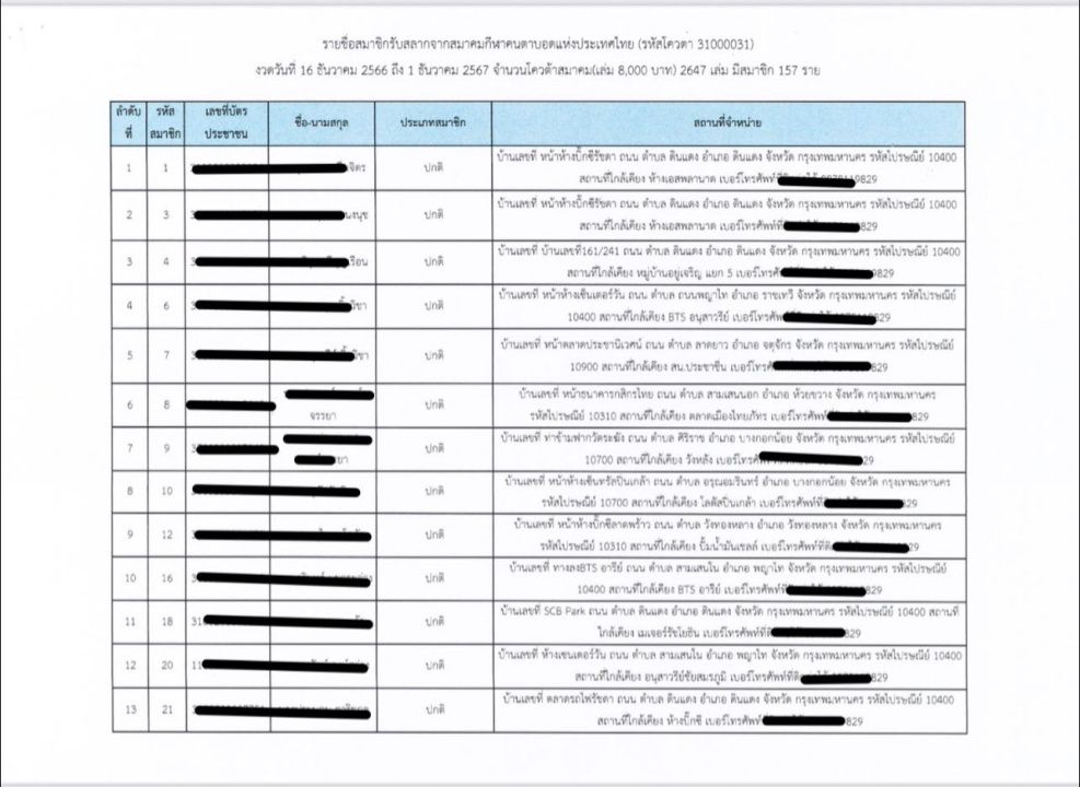 แต่สิ่งที่พบคือ รายชื่อส่วนใหญ่ ไม่ใช่นักกีฬาคนตาบอด แต่คือ คนปกติ และทุกรายคือ นอมินีที่ถูกใช้ชื่อแลกเงิน 500 บาทต่อครั้ง มีนามสกุลซ้ำเป็นกลุ่ม และที่หนักที่สุดคือ ใช้เบอร์โทรศัพท์ “เบอร์เดียวกัน” แทบทั้งลิสต์ และเบอร์นั้น คือเบอร์ของหนึ่งในกรรมการสมาคม ที่เป็นผู้บริหารบริษัทจำหน่ายสลากกินแบ่งด้วยตัวเอง