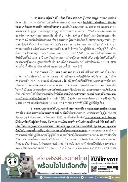 2. การจัดตั้งสาขาพรรคการเมืองและการแต่งตั้งตัวแทนพรรคการเมืองประจำจังหวัด