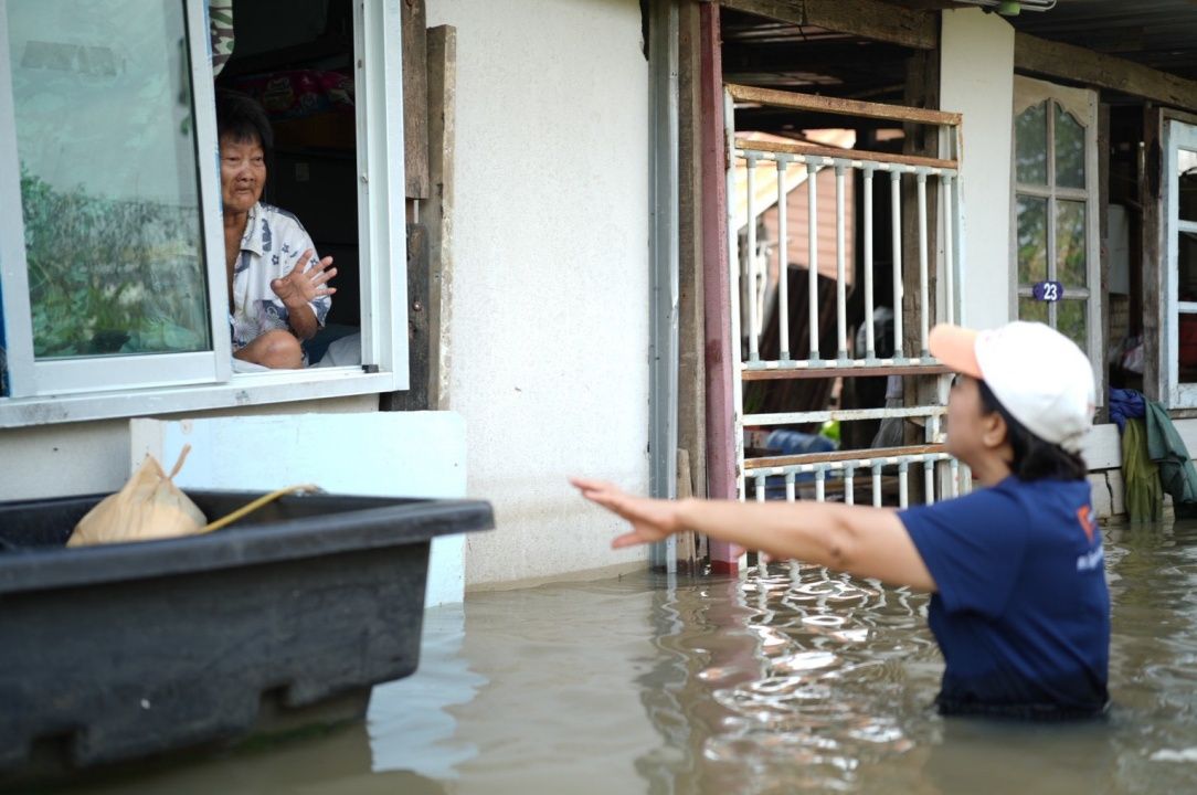 วันที่ 13 พฤศจิกายน 2568 นางปัญญารัตน์ นันทภูษิตานนท์ สส.นนทบุรี เขต 2 พร้อมด้วยนายสุรพันธ์ ไวยากรณ์ สส.นนทบุรี เขต 1 พรรคประชาชน ลงพื้นที่เยี่ยมผู้ประสบภัยน้ำท่วมที่บริเวณซอย 7 นนทบุรี ตำบลสวนใหญ่ ชุมชนศาลเจ้าตลาดขวัญ พบว่า น้ำกำลังขึ้นสูง ก่อนหน้านี้น้ำท่วมบริเวณทางเดิน น้ำท่วมระดับเอว ขณะที่กลางซอยนั้น น้ำท่วมสูงจนถึงระดับอก