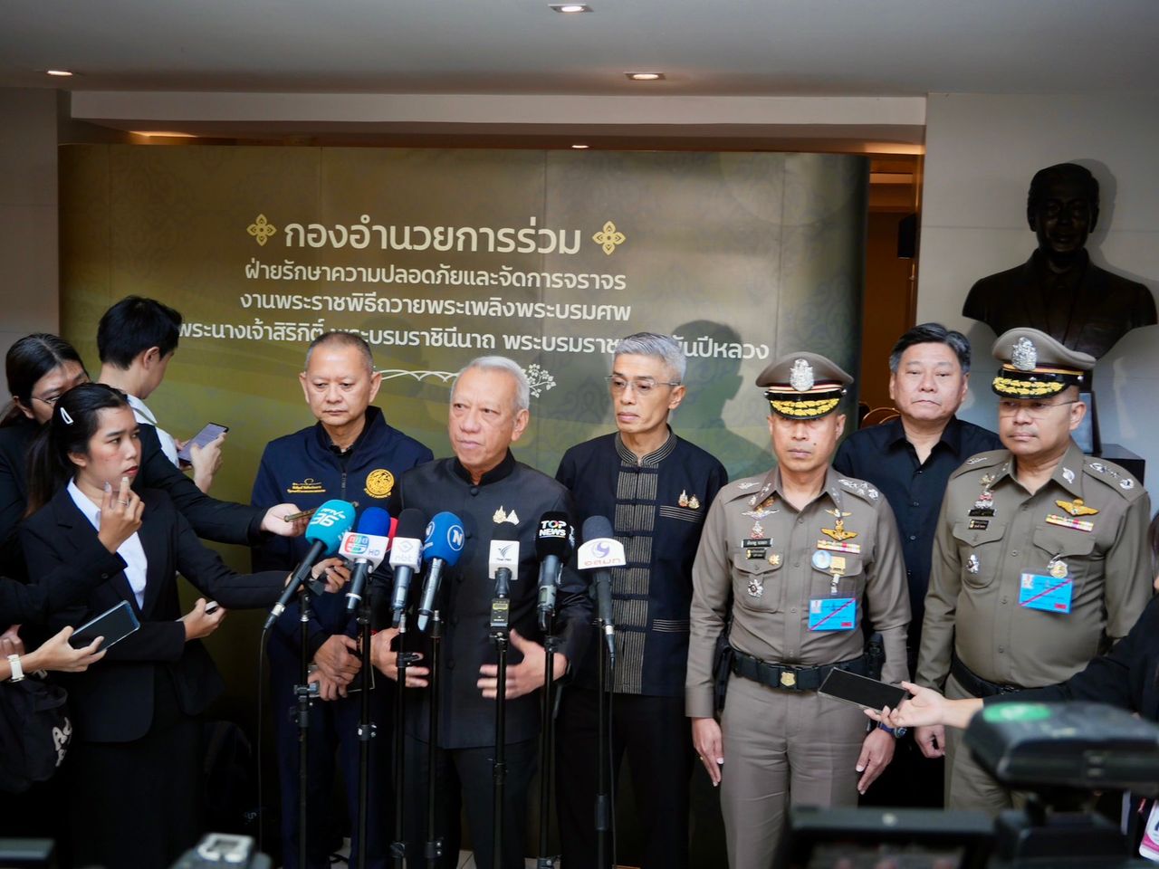 นายพิพัฒน์ กล่าวต่อว่า เรื่องการจราจร จุดจอดรถ ระบบรับส่งประชาชน โดยกองอำนวยการร่วมฝ่ายรักษาความปลอดภัยและการจัดการจราจร รายงานว่า มีการจัดระบบจราจรโดยรอบให้เป็นทางเดียว ลดการสะสมตัว พร้อมทั้งจัด Shuttle Bus และรถโดยสารสาธารณะร่วมบริการ พร้อมรองรับรถบัสจากต่างจังหวัด โดยจัดพื้นที่จอดหลักทั้ง 4 มุมเมือง พร้อมทั้งมีจุดพักคอยขนาดใหญ่ก่อนเข้าสนามหลวง และมีเจ้าหน้าที่ดูแลทุกจุดเสี่ยงอย่างต่อเนื่อง