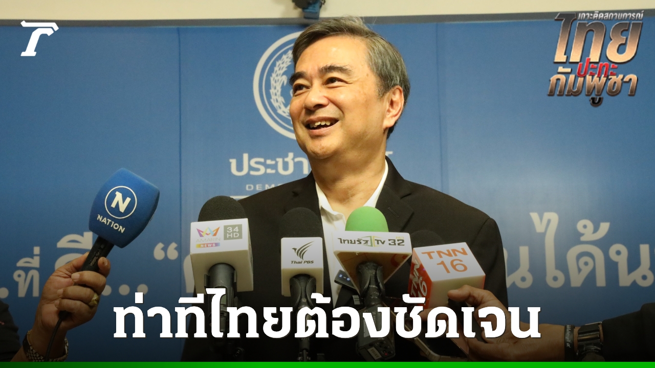 “อภิสิทธิ์” แนะรัฐบาลใช้การทูตเร่งแจงสังคมโลก กรณีไทย-กัมพูชา ชี้ช่องนายกฯ ตรวจสอบสหรัฐฯ เชื่อใคร ย้ำท่าทีรัฐบาลไทยต้องชัดเจน มั่นใจเป็นฝ่ายถูกละเมิดอธิปไตย ลุยเดินต่อ