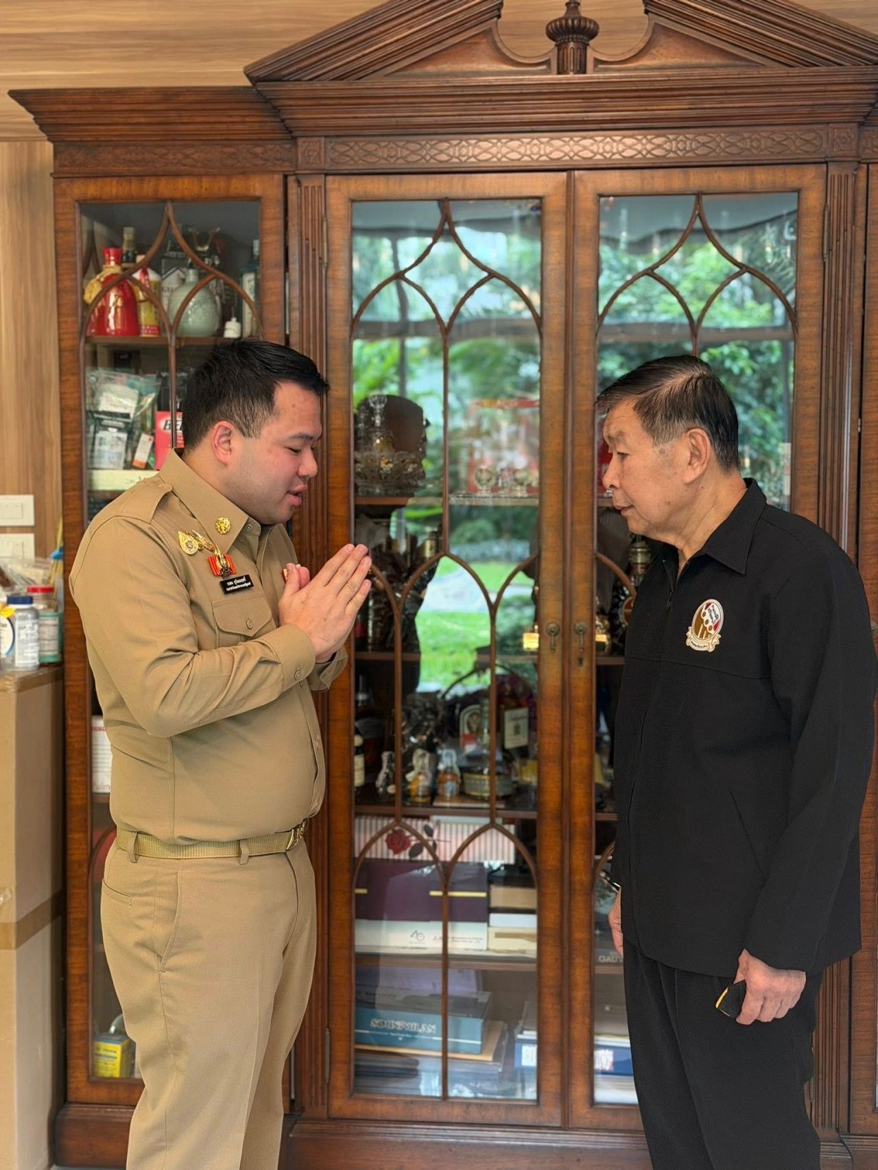“ธนดล” นำพวงมาลัยเข้ากราบขอพร “พล.ต.อ.เสรีพิศุทธ์” และให้สวมอินทรธนูบนบ่า หลังได้รับแต่งตั้งเป็นข้าราชการการเมือง เผย เป็นผู้ให้โอกาสทำงานการเมืองคนแรก