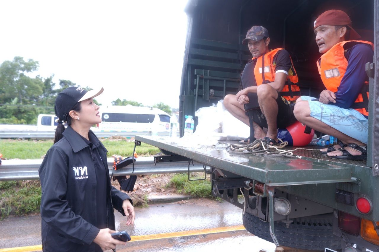 วันที่ 26 พฤศจิกายน 2568 นางสาวธีรรัตน์ สำเร็จวาณิชย์ สส.กทม. และรองหัวหน้าพรรคเพื่อไทย อดีตรัฐมนตรีช่วยว่าการกระทรวงมหาดไทย พร้อมด้วย นายก่อแก้ว พิกุลทอง สส.บัญชีรายชื่อ และรองหัวหน้าพรรคเพื่อไทย ทพญ.ศรีญาดา ปาลิมาพันธ์ สส.บัญชีรายชื่อและนายทะเบียนพรรค เดินทางออกจากสนามบินหาดใหญ่ จ.สงขลา ไปยังสี่แยกคลองหวะ และสี่แยกควนลัง ซึ่งเป็นจุดในการเปลี่ยนไปขึ้นรถบรรทุกของกองทัพ เพื่อต่อเข้าไปยังพื้นที่ประสบภัย