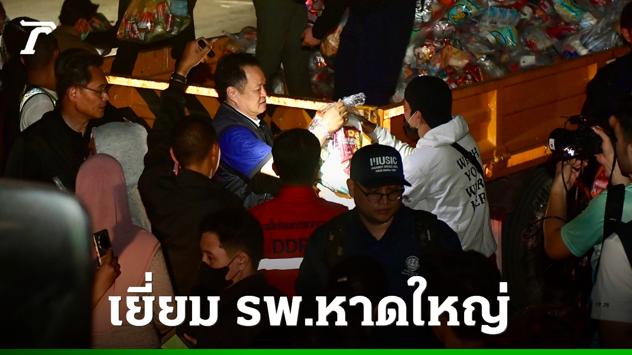 จากนั้น นายกฯได้เดินออกมาบริเวณหน้าโรงพยาบาลหาดใหญ่ เพื่อมอบถุงยังชีพ และเครื่องอุปโภคบริโภคให้กับประชาชนที่มารอรับ พร้อมพูดคุยกับชาวบ้านสอบถามถึงสถานการณ์ความเป็นอยู่.