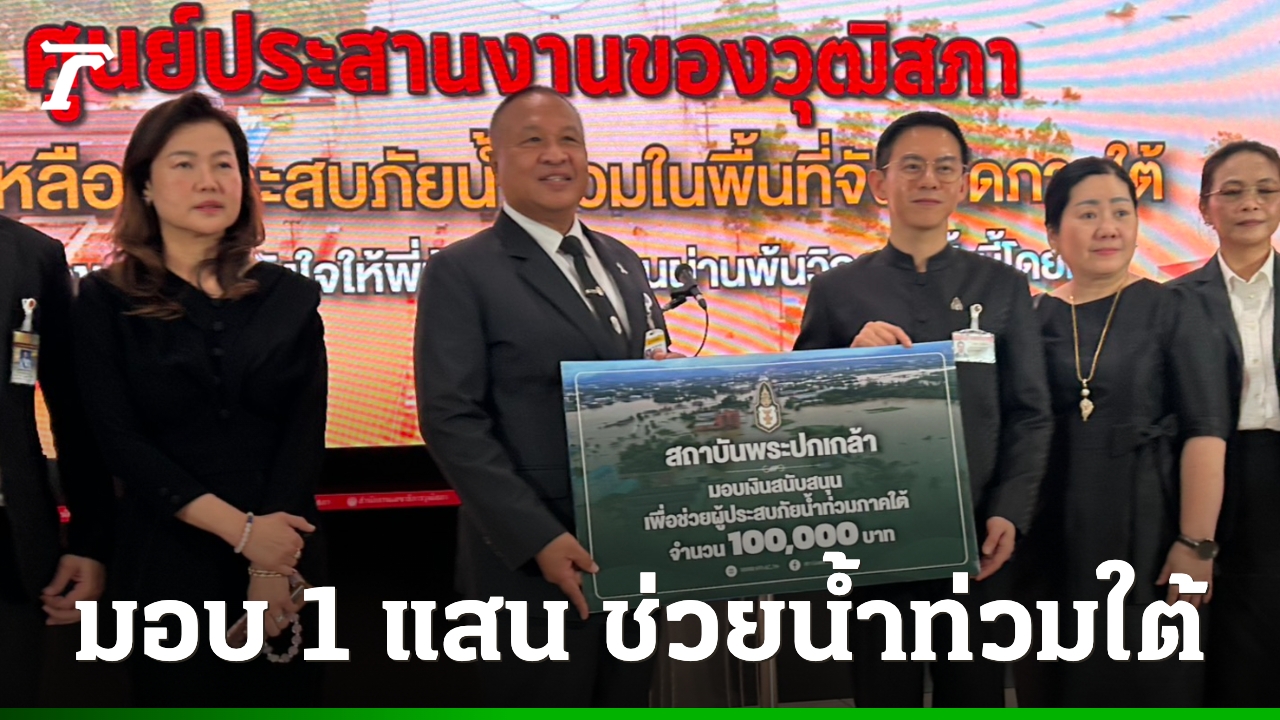 วุฒิสภา รับมอบเงินช่วยเหลือผู้ประสบภัยน้ำท่วมภาคใต้ จากสถาบันพระปกเกล้า จำนวน 1 แสนบาท ด้าน “บิ๊กเกรียง” เสนอตั้งวันสตอปเซอร์วิส ลดขั้นตอนขอรับเงินเยียวยา