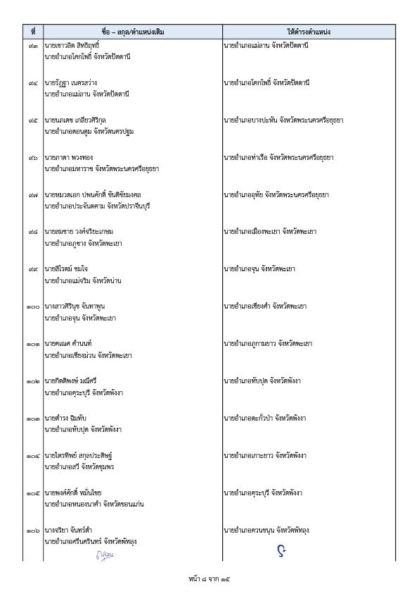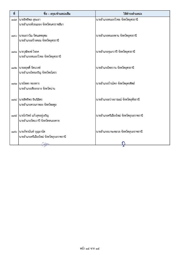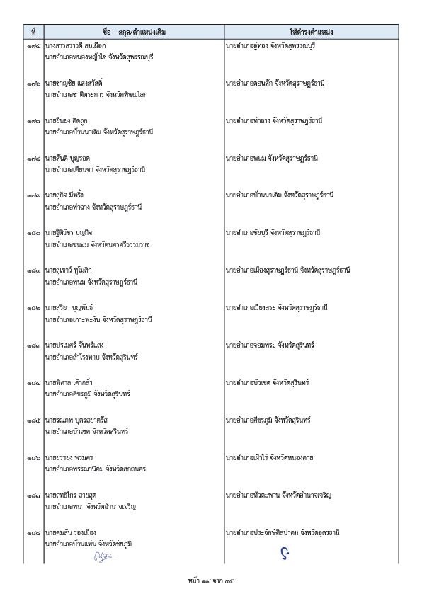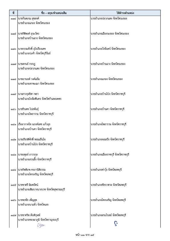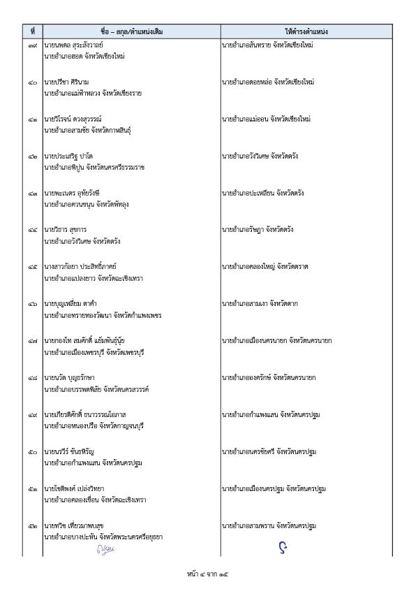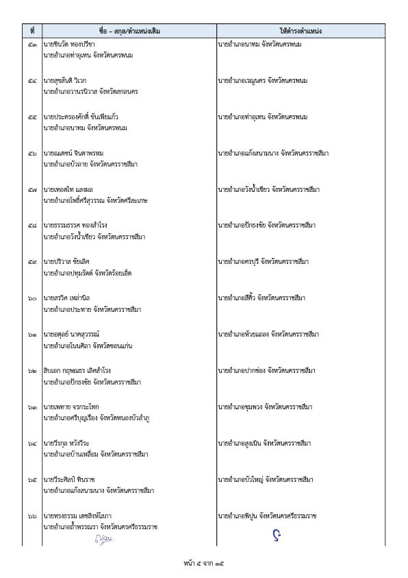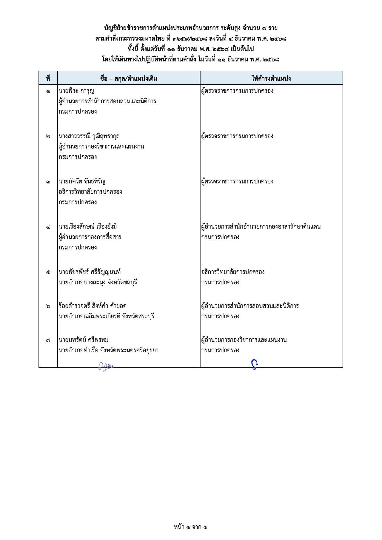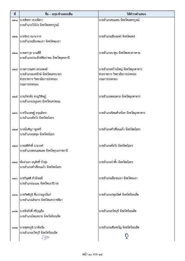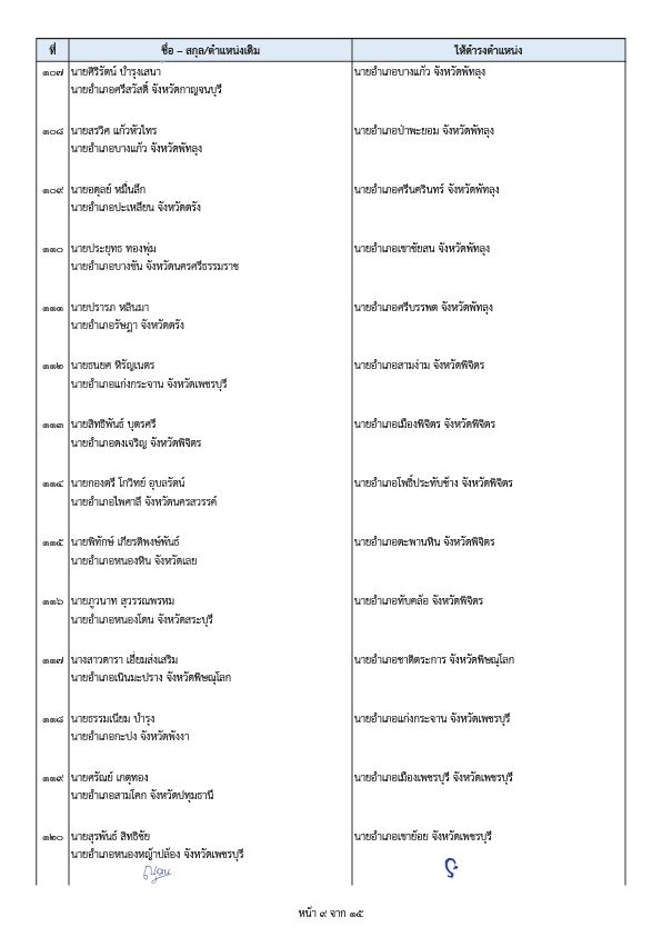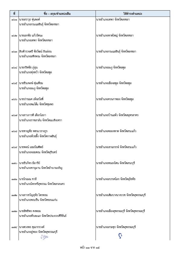 - นายพีระ การุญ ตำแหน่งเดิม ผู้อำนวยการสำนักการสอบสวนและนิติการ กรมการปกครอง ให้ดำรงตำแหน่ง ผู้ตรวจราชการกรมการปกครอง
