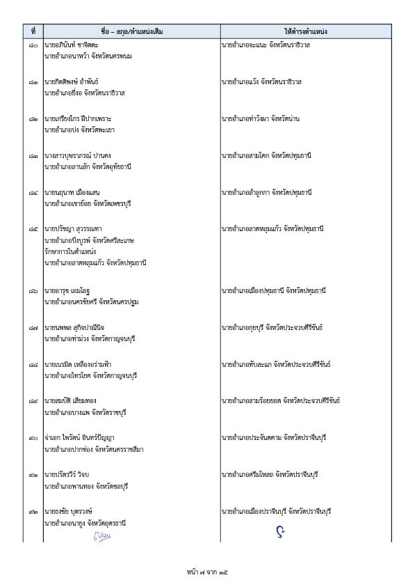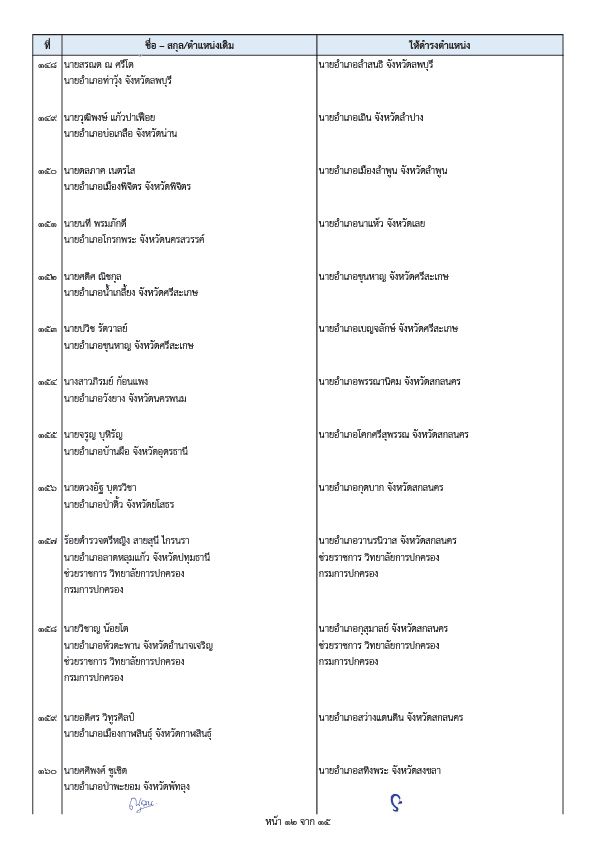 - นายนพรัตน์ ศรีพรหม ตำแหน่งเดิม นายอำเภอท่าเรือ จังหวัดพระนครศรีอยุธยา ให้ดำรงตำแหน่ง ผู้อำนวยการกองวิชาการและแผนงาน กรมการปกครอง