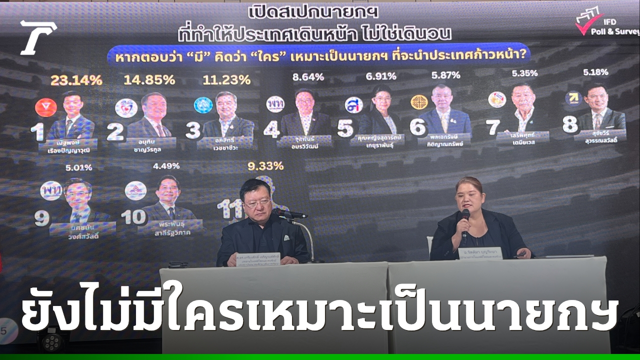 โพลชี้คนไทยต้องการ “นายกฯ ดีและเก่ง” คุณธรรมต้องมาก่อน “เท้ง” ณัฐพงษ์ นำ 23.14% “อภิสิทธิ์” รั้ง Top 3 แซง “จุลพันธ์”