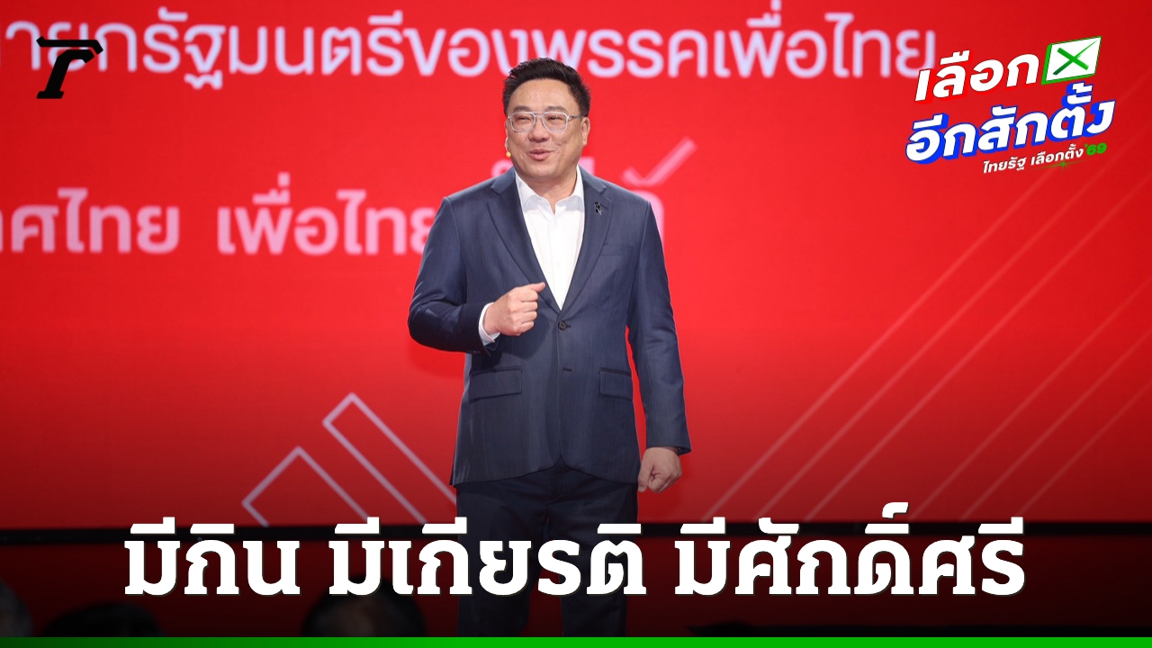 เพื่อไทยเปิดตัวแคนดิเดตนายกฯ "จุลพันธ์" ชูนโยบายเร่งด่วน "หวยเกษียณ-ล้างหนี้" ปลดล็อคเพื่อยกเครื่องประเทศไทยให้ประชาชนมีกิน มีเกียรติ มีศักดิ์ศรี