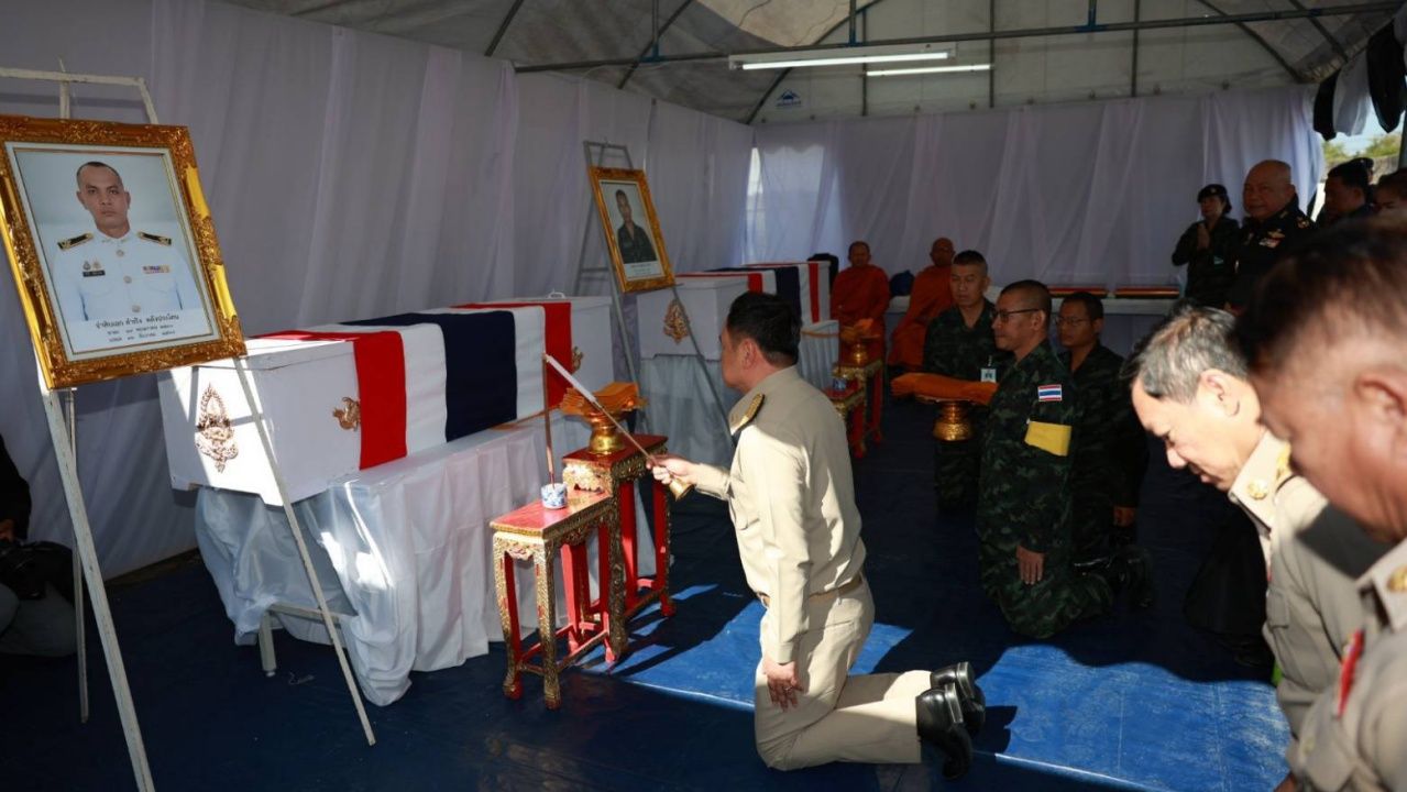 เมื่อเวลา 10.00 น. วันที่ 21 ธ.ค. 2568 ที่โรงพยาบาลค่ายวีรวัฒน์โยธิน จ.สุรินทร์ นายอนุทิน ชาญวีรกูล นายกรัฐมนตรีและรมว.มหาดไทย เป็นประธานในพิธีส่งศพทหารกล้า จ.ส.อ.สำเริง คลังประโคน และพลทหารภานุพัฒน์ เสาร์สา นักรบสมรภูมิเนิน 350