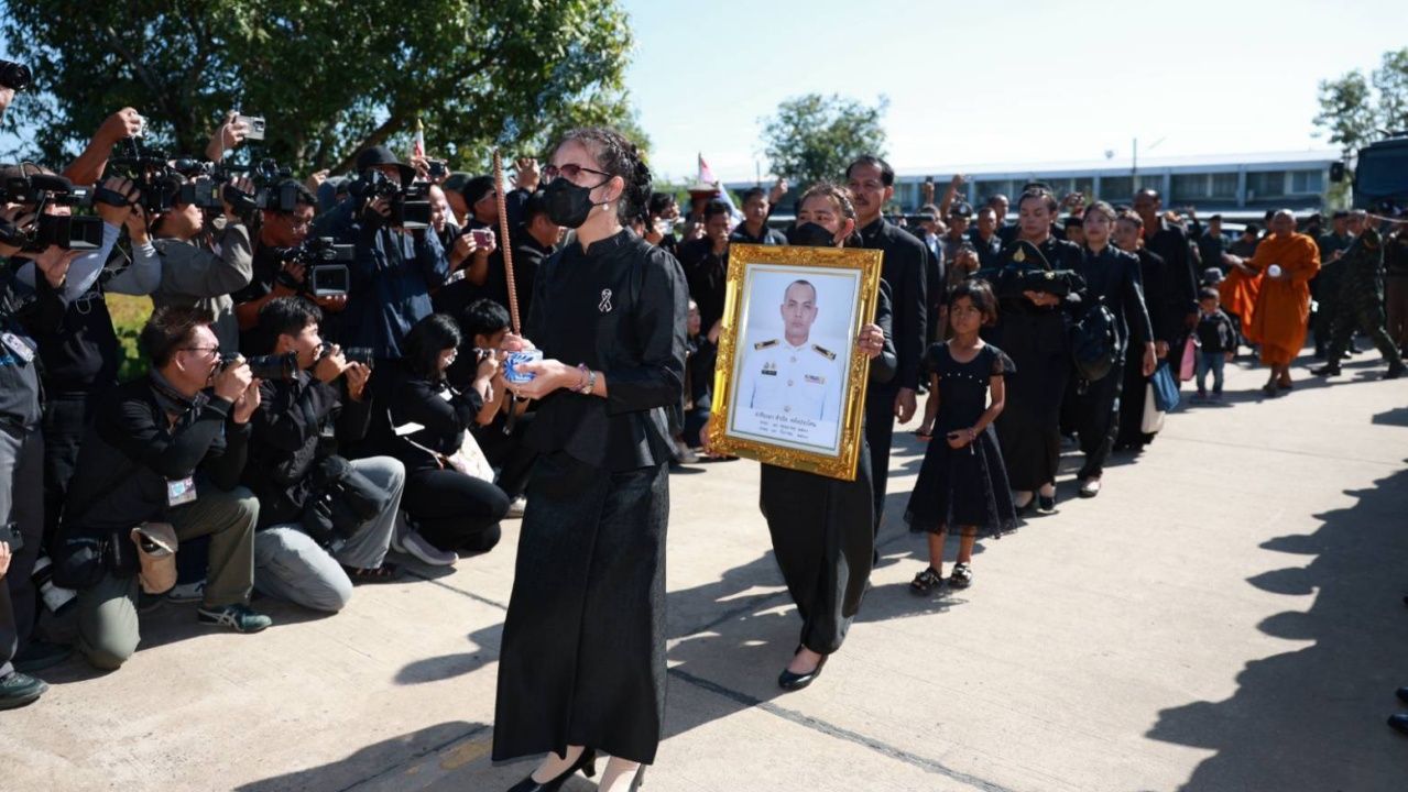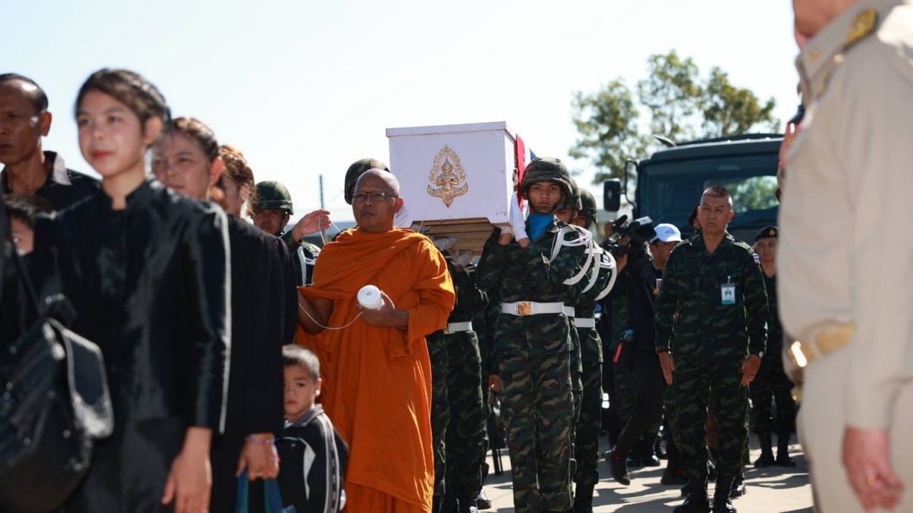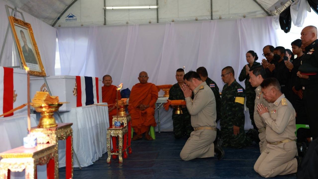 โดยบรรยากาศภายในพิธีเต็มไปด้วยความโศกเศร้าของครอบครัวทหารกล้าทั้งสองครอบครัว รวมทั้งมีประชาชนชาวจ.สุรินทร์ ยืนเข้าแถวโบกธงชาติไทยบริเวณถนนทางออกของโรงพยาบาลฯ เพื่อร่วมส่งทหารกล้าทั้งสองนาย กลับภูมิลำเนาเพื่อประกอบพิธีกรรมทางศาสนา
