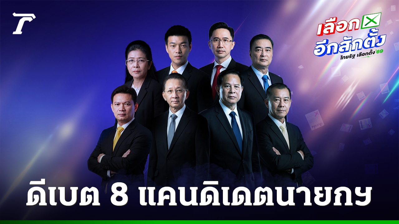 ถ่ายทอดสดเวทีดีเบตครั้งแรก “แคนดิเดตนายกฯ 8 คน” 8 พรรคการเมือง “ณัฐพงษ์ - ยศชนัน - อภิสิทธิ์ - ธีระชัย - พีระพันธุ์ - สุชัชวีร์ - คุณหญิงสุดารัตน์ - พล.อ.รังษี” ผ่านไทยรัฐตั้งแต่ 17.30 น.