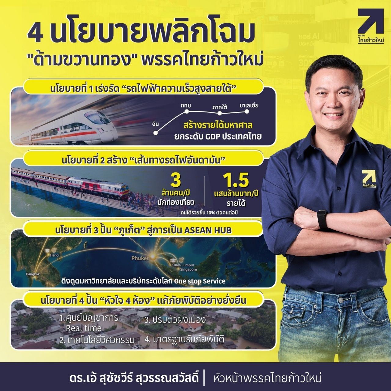 “พรรคไทยก้าวใหม่” ชู 4 นโยบายแรกในการเลือกตั้ง 2569 มุ่งพลิกโฉม “ด้ามขวานทอง” สู่ศูนย์กลางเศรษฐกิจอาเซียน