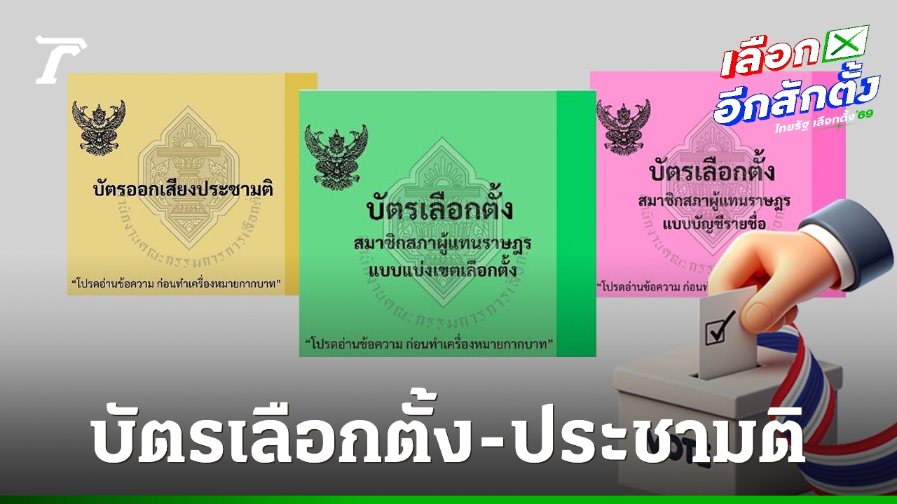 เลือกตั้ง : 2569 กกต. ประชาสัมพันธ์ตัวอย่าง บัตรเลือกตั้ง สส.แบบแบ่งเขต “สีเขียว” บัตรเลือกตั้ง สส.แบบบัญชีรายชื่อ “สีชมพู” และบัตรออกเสียงประชามติ “สีเหลือง”