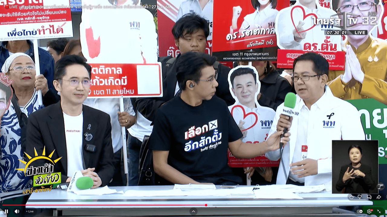 วันที่ 27 ธ.ค. 2568 เมื่อเวลา 07.20 น. ที่สนามกีฬาไทย-ญี่ปุ่น ดินแดง นายยศชนัน วงศ์สวัสดิ์ แคนดิเดตนายกรัฐมนตรี พรรคเพื่อไทย พร้อมด้วย นายจิรายุ ห่วงทรัพย์ ผู้สมัครผู้ว่า สส.กทม. เขตคลองสามวา พรรคเพื่อไทย ให้สัมภาษณ์ในรายการข่าวเช้าหัวเขียว