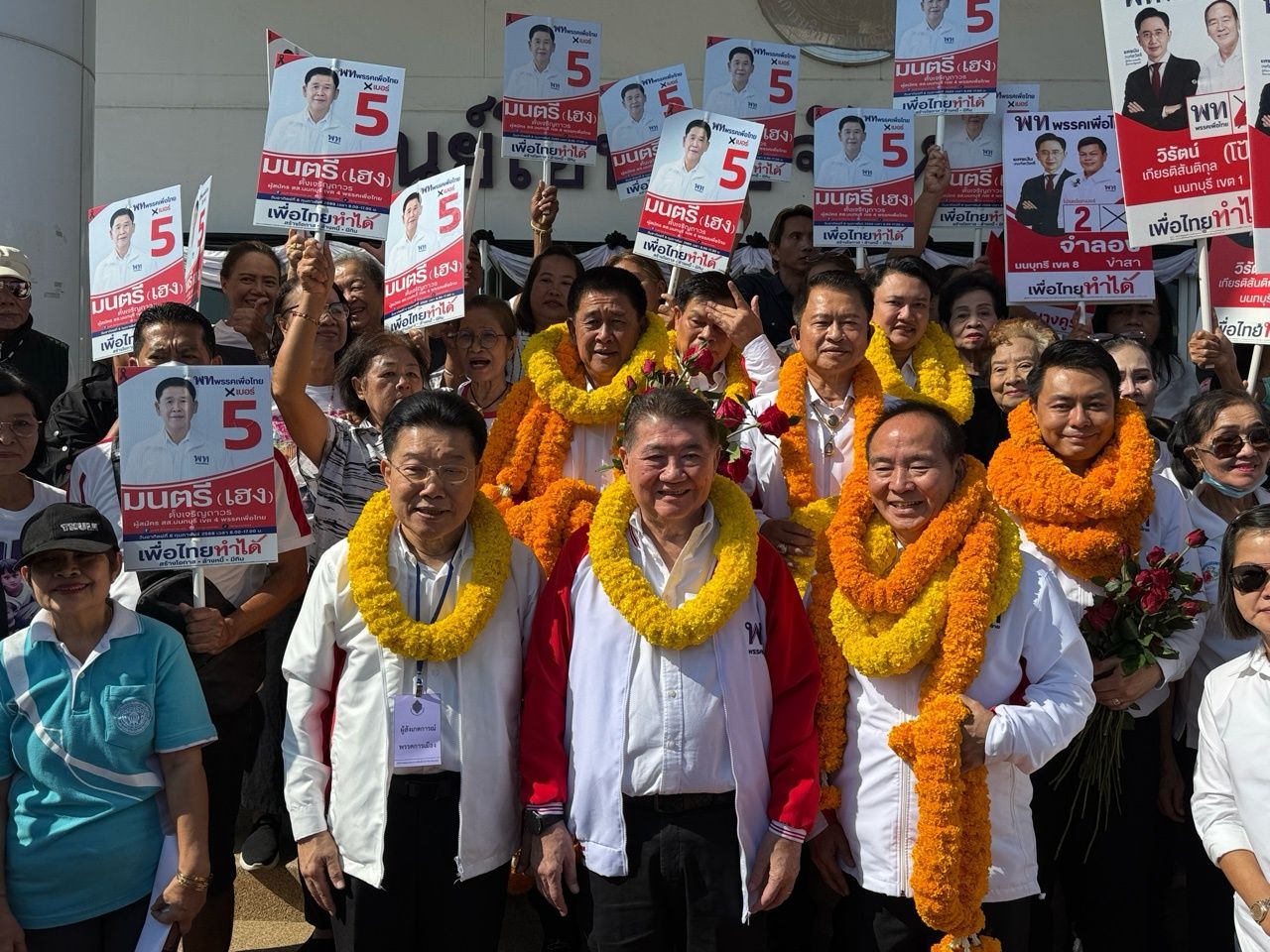 วันนี้ผู้สมัคร สส.นนทบุรีทั้ง 8 เขตนะครับ รวมทั้งบัญชีรายชื่ออีกหนึ่งคนนะครับ สำหรับนนทบุรี 9 ที่นั่ง การเลือกตั้งที่สำคัญวันที่ 8 กุมภาพันธ์ อยากให้ทุกคนไปใช้สิทธิเลือกตั้งอย่างเต็มที่ เพราะว่าการเลือกตั้งครั้งนี้เป็นการเลือกตั้งทิศทางของประเทศ เป็นการเลือกตั้งเพื่ออนาคต แล้วการเลือกตั้งครั้งนี้มีตั้ง 3 บัตร มีทั้งบัตรพื้นที่เขต มีทั้งบัตรปาร์ตี้ลิสต์ และยังมีบัตรประชามติอีก เพราะฉะนั้นต้องทำความเข้าใจทั้ง 3 และต้องเลือกทั้ง 3 ส่วน อยากให้เลือกเพื่อไทยทั้งคนทั้งพรรค