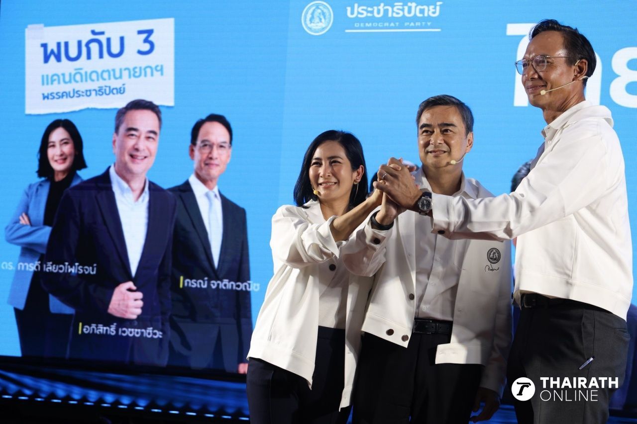 เมื่อเวลา 10.30 น. วันที่ 29 ธันวาคม 2568 ที่พรรคประชาธิปัตย์ (ปชป.) แคนดิเดตนายกรัฐมนตรีของพรรคประชาธิปัตย์ 3 คน นำโดย นายอภิสิทธิ์ เวชชาชีวะ หัวหน้าพรรคประชาธิปัตย์ แคนดิเดตนายกรัฐมนตรี คนที่ 1 พร้อมด้วยนายกรณ์ จาติกวณิช และ ดร.การดี เลียวไพโรจน์ แคนดิเดตนายกรัฐมนตรีคนที่ 2 และ 3 ตามลำดับ ร่วมเปิดตัวกรอบนโยบายที่จะใช้ในการรณรงค์หาเสียงในคอนเซปต์ “ไทยหายจน ด้วยคนทำเป็น”