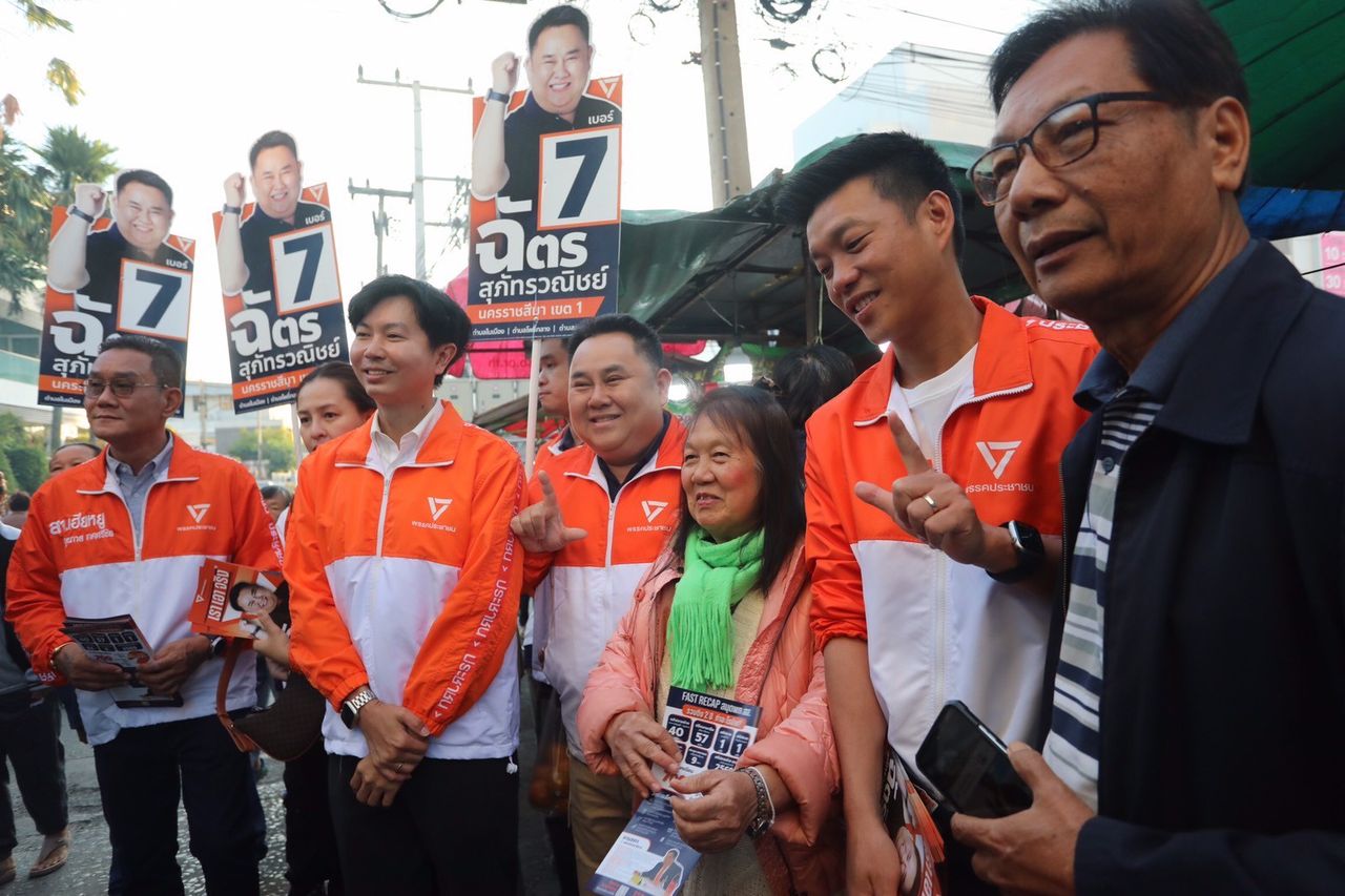 “ณัฐพงษ์ เรืองปัญญาวุฒิ” แคนดิเดตนายกฯ จากพรรคประชาชน ลุยหาเสียงช่วยผู้สมัคร สส.นครราชสีมา ก่อนขึ้นรถแห่และเดินตลาดอ้อนชาวโคราชกาพรรคประชาชนทั้ง 2 ใบ เพื่อป้องกันเขตเดิมรุกเพิ่มเขตใหม่