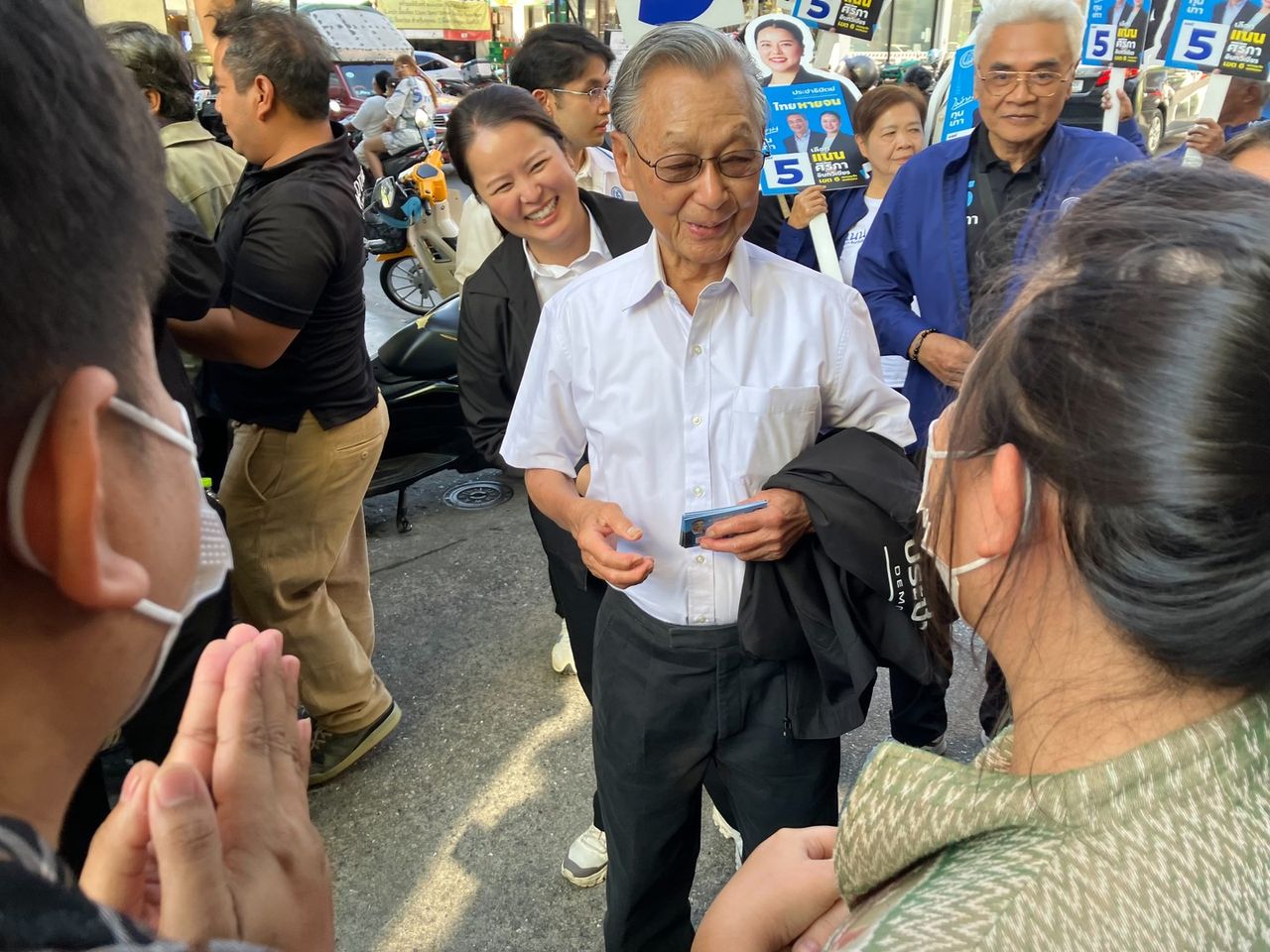 อดีตนายกฯ “ชวน” ลุยช่วย “ศิริภา อินทวิเชียร” ผู้สมัคร สส.กทม. ปชป. หาเสียงซอยนาทอง ชวนชาวบ้านตัดวงจรซื้อสิทธิ์ขายเสียง