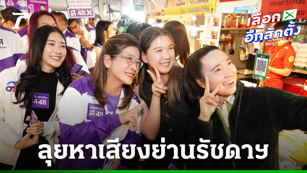 เมื่อเวลา 11.30 น. วันที่ 6 มกราคม 2569 ที่ตลาดนัดเมืองไทย ถนนรัชดาภิเษก กรุงเทพฯ คุณหญิงสุดารัตน์ เกยุราพันธุ์ หัวหน้าพรรคและแคนดิเดตนายกรัฐมนตรีพรรคไทยสร้างไทย (ทสท.) พร้อมนายสุรเดช ทวีแสงสกุลไทย ประธานยุทธศาสตร์ด้านเศรษฐกิจพรรคไทยสร้างไทย ร่วมลงพื้นที่ตลาดนัดเมืองไทย ถนนรัชดาฯ เพื่อหาเสียงช่วยนายปฏิวัติ ตรองจิตต์ ผู้สมัคร สส.กทม. เขต 5 เบอร์ 1 ห้วยขวาง-วังทองหลาง พรรคไทยสร้างไทย จากกลุ่มพ่อค้าแม่ค้าและพนักงานบริษัทในย่าน