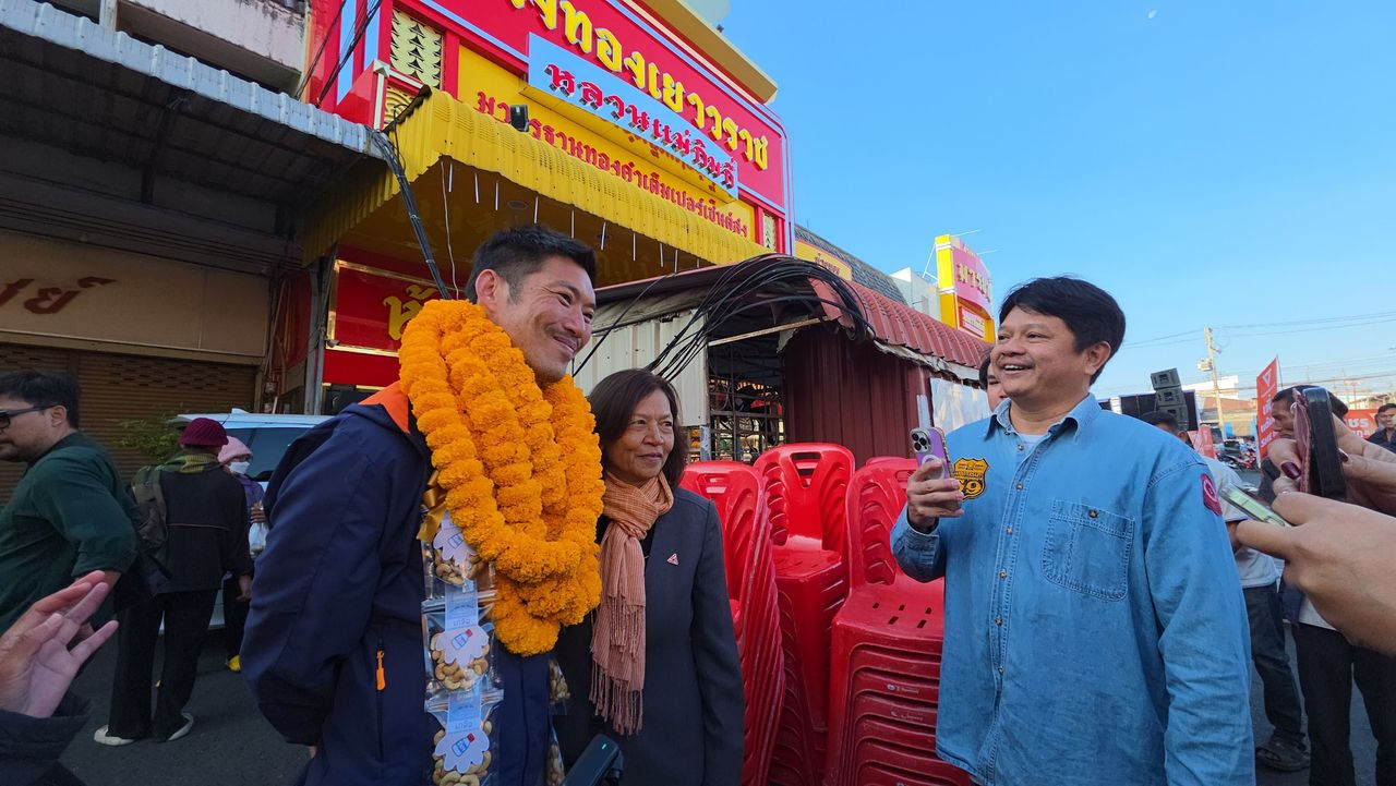 วันที่ 8 มกราคม 2569 ที่ตลาดสดเทศบาลเมืองนางรอง อ.นางรอง จ.บุรีรัมย์ นายธนาธร จึงรุ่งเรืองกิจ ประธานคณะก้าวหน้า ในฐานะผู้ช่วยหาเสียงพรรคประชาชน พร้อมด้วย นายคำพอง เทพาคำ และ นายทวีศักดิ์ ทักษิณ อดีต สส. พรรคก้าวไกล ลงพื้นที่ช่วยหาเสียงให้กับ นายเพชร สุพพัตกุล ผู้สมัคร สส.บุรีรัมย์ เขต 8 พรรคประชาชน บรรยากาศเป็นไปอย่างคึกคัก มีประชาชนเข้ามาให้กำลังใจ และถ่ายรูปด้วย