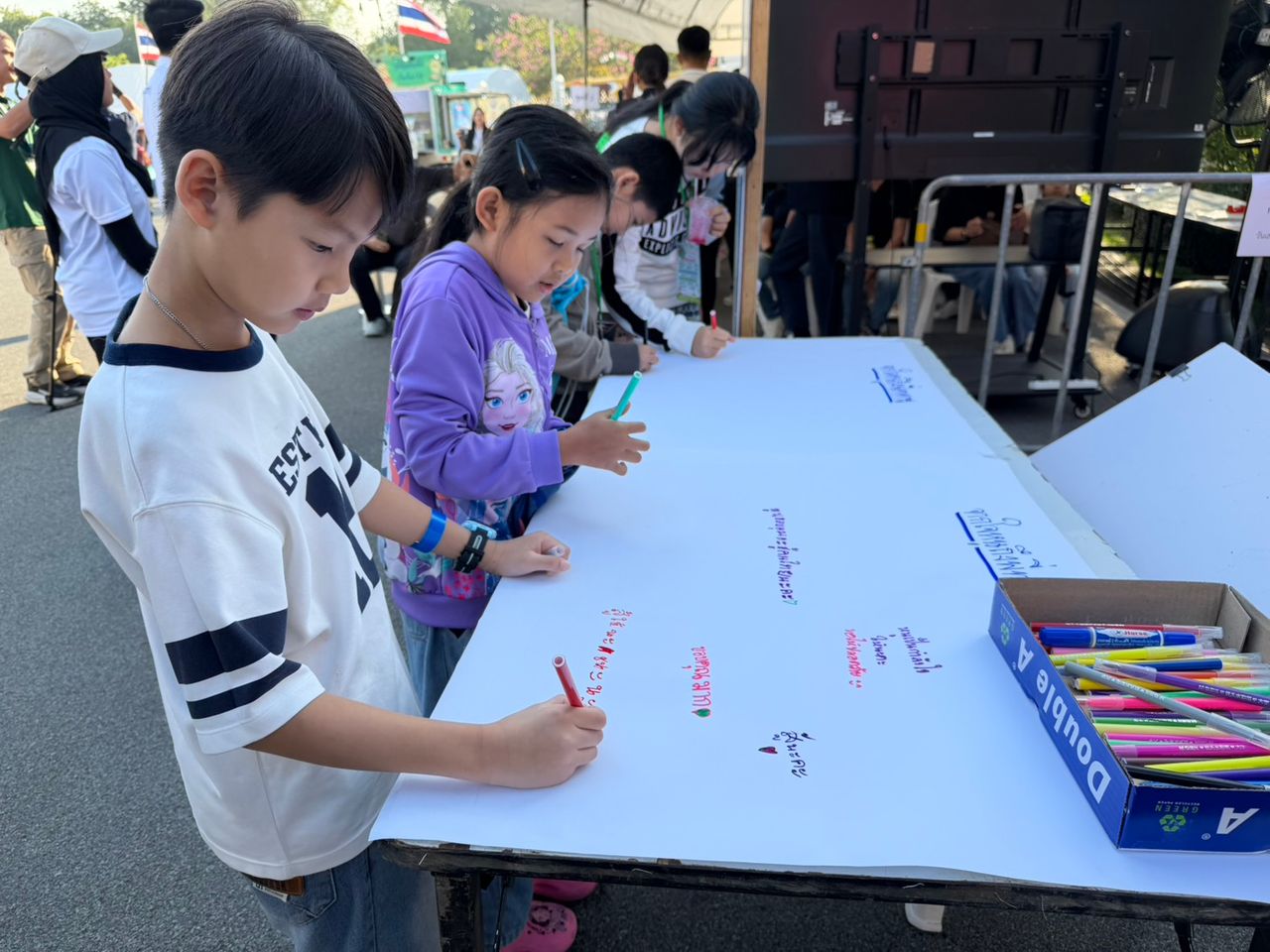 นอกจากนี้ ภายในงานยังมี บอร์ด “จากใจหนูถึงพี่ทหาร” เปิดพื้นที่ให้เด็ก ๆ เขียนข้อความส่งกำลังใจถึงทหารที่ปฏิบัติหน้าที่ตามแนวชายแดน โดย น้องโชค ซึ่งเป็นเด็กคนที่ 2 ที่ได้นั่งเก้าอี้นายกฯ ได้เขียนข้อความเป็นคนแรกว่า “ขอบคุณพี่ๆ ทหารที่ปกป้องประเทศไทยเพื่อพวกเราทุกคน” ขณะที่เด็กๆ คนอื่นๆ ต่างร่วมเขียนข้อความให้กำลังใจ เช่น “พี่ทหารสู้มากๆ” และ “ขอให้พี่ทหารสู้ๆ”