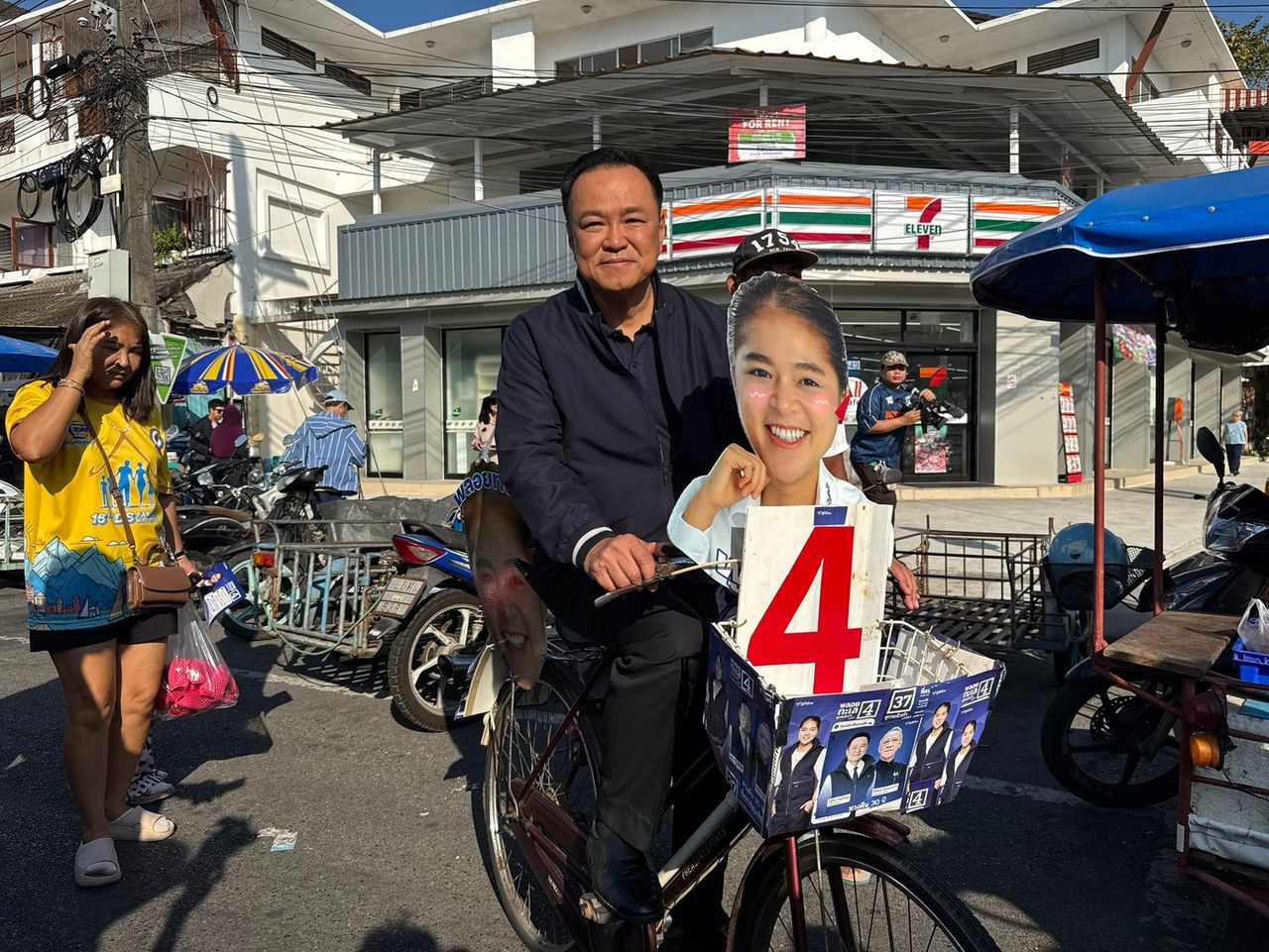ในช่วงท้ายนายอนุทิน ได้ขึ้นคร่อมจักรยาน ซึ่งเป็นจักรยานที่ติดชื่อ และรูปผู้สมัคร พร้อมชูนิ้วเป็นเบอร์ 4 ซึ่งเป็นหมายเลขของนางสาวพลอยทะเล ก่อนจะปั่นจักรยาน ออกมาหาเสียงนอกตลาดเกษตร