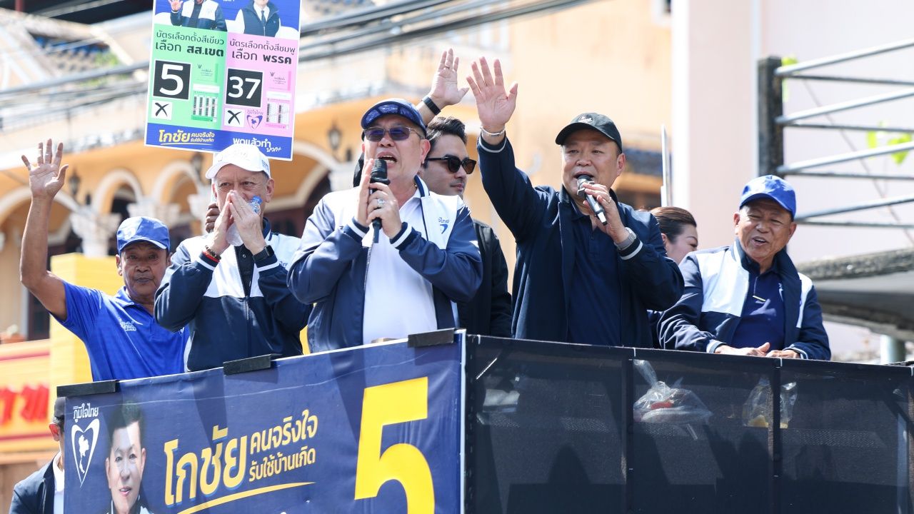"อนุทิน" ไหว้หลวงปู่ทวดเอาฤกษ์เอาชัย ก่อนช่วยลูกทีมหาเสียงที่พังงา อ้อนขอยกจังหวัดการันตีคนละครึ่งเฟส 2 มาแน่