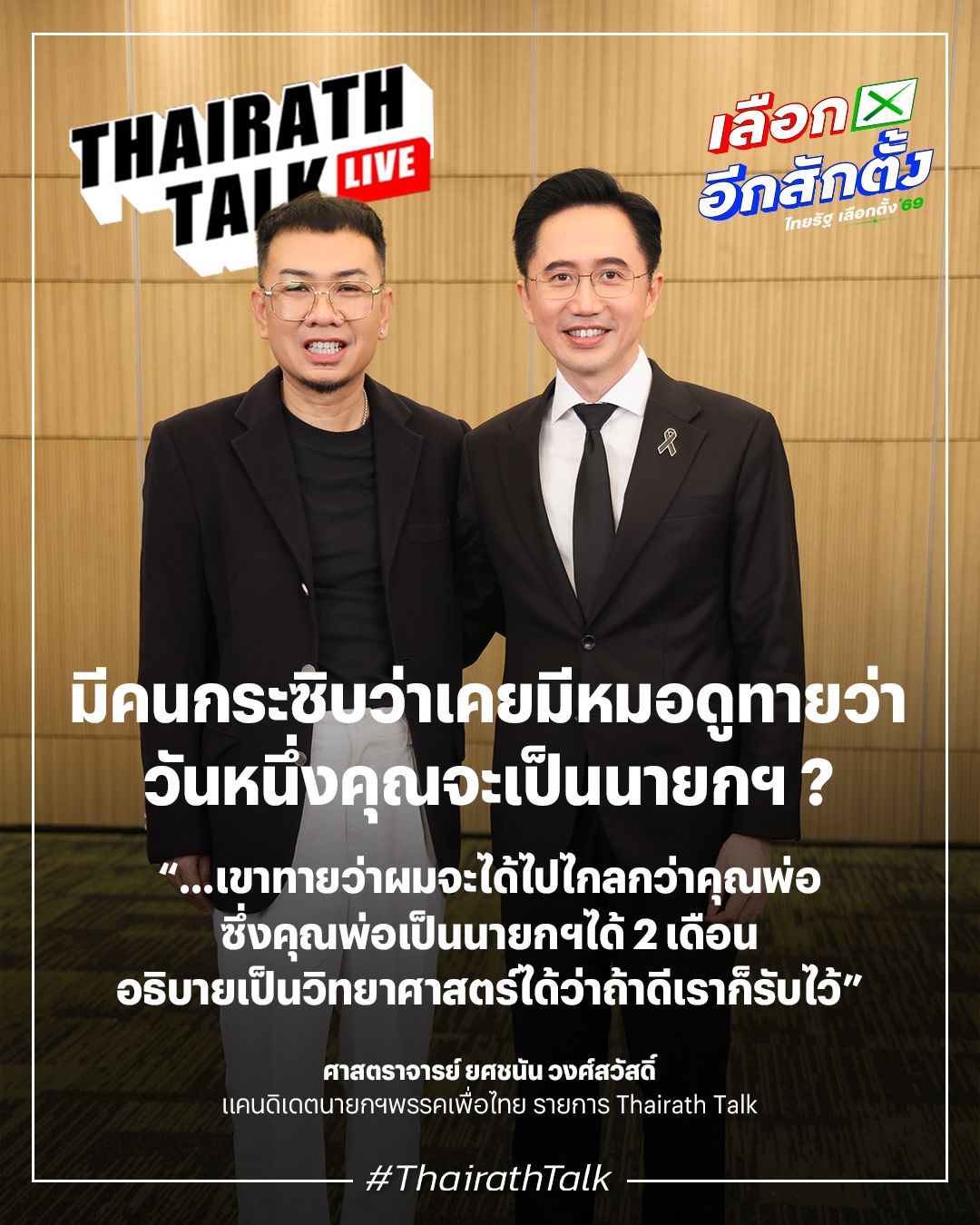 คุณเรโด้ รายการ Thairath Talk เปิดใจศาสตราจารย์ ยศชนัน วงศ์สวัสดิ์ แคนดิเดตนายกฯพรรคเพื่อไทย ทุกเรื่องราวที่คุณรู้เป็นที่แรก....