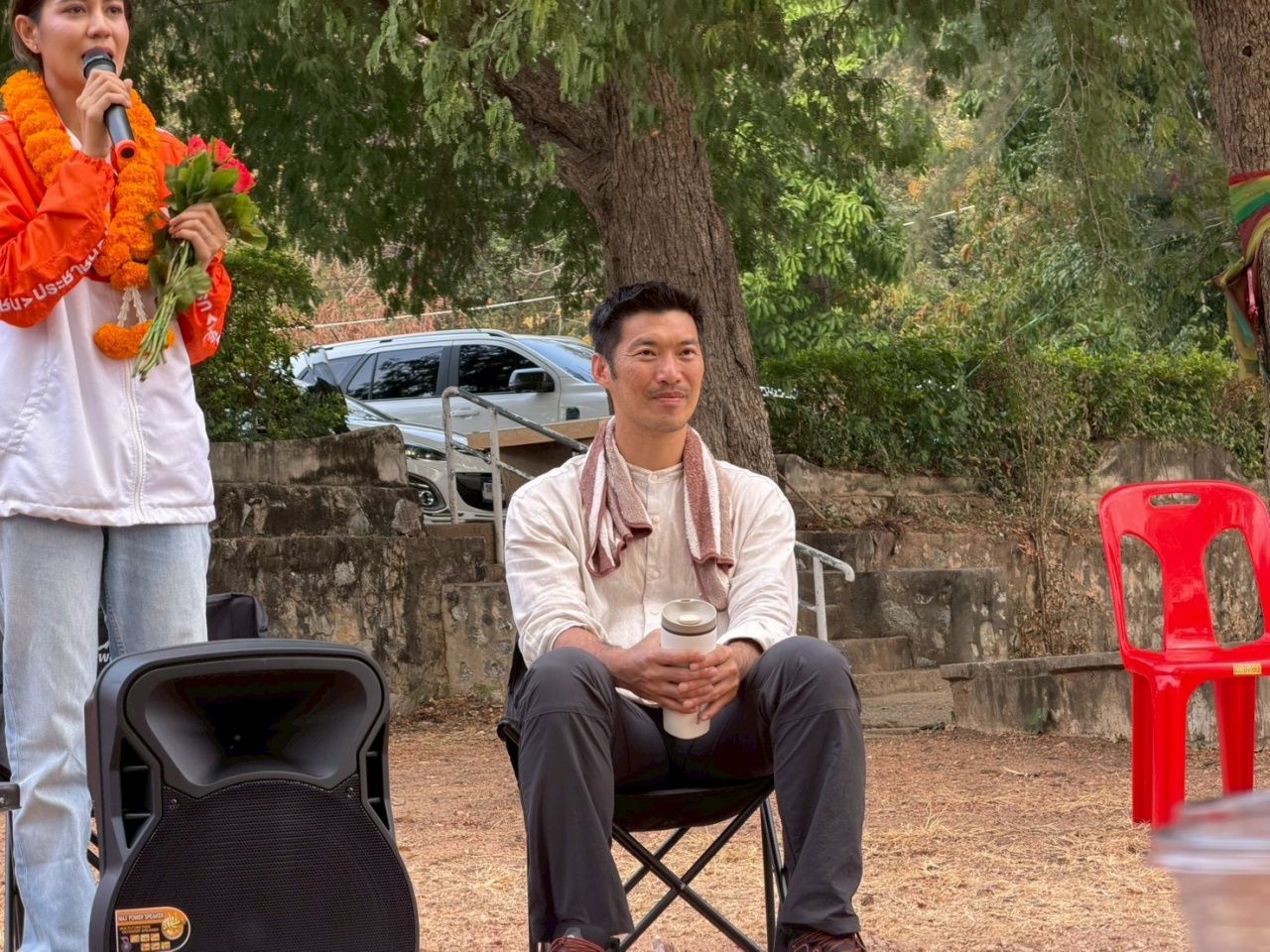 อย่างไรก็ตาม ระหว่างวงแลกเปลี่ยนความคิดเห็น มีประชาชนสอบถามถึงแนวทางของพรรคในอนาคต จากกรณีผู้สมัคร สส.ตาก เขต 2 ของพรรคประชาชน ถูกจับกุมข้อหาพัวพันเว็บพนันออนไลน์ นายธนาธร ตอบในประเด็นนี้ว่า การที่พรรคประชาชนได้ประกาศว่ามีเราไม่มีเทานั้น หมายถึงเราพร้อมเอาจริงเอาจังกับเรื่องการทุจริตคอร์รัปชัน หรือการกระทำใดๆ ที่ผิดต่อกฎหมาย หากพรรคพบเจอ จะไม่อุ้ม ไม่ปกป้อง จะจัดการอย่างจริงจัง ไม่เว้นหน้าใคร