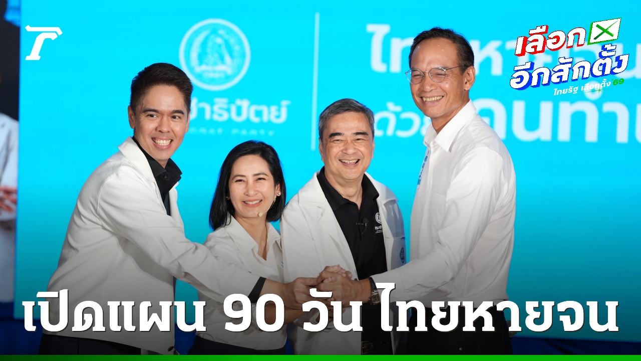 เมื่อเวลา 09.30 น. วันที่ 16 มกราคม 2569 ที่พรรคประชาธิปัตย์ (ปชป.) นายอภิสิทธิ์ เวชชาชีวะ หัวหน้าพรรคพร้อม นายกรณ์ จาติกวณิช, นางการดี เลียวไพโรจน์ 3 แคนดิเดตนายกรัฐมนตรี และนายวีระพงษ์ ประภา รองหัวหน้าพรรค ดูแลเศรษฐกิจระหว่างประเทศ ร่วมแถลง เปิดแผนปฏิบัติการ 90 วันแรก ทำอย่างไร ให้ไทยหายจน