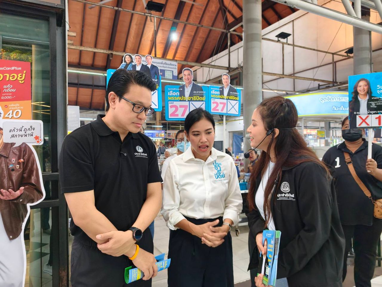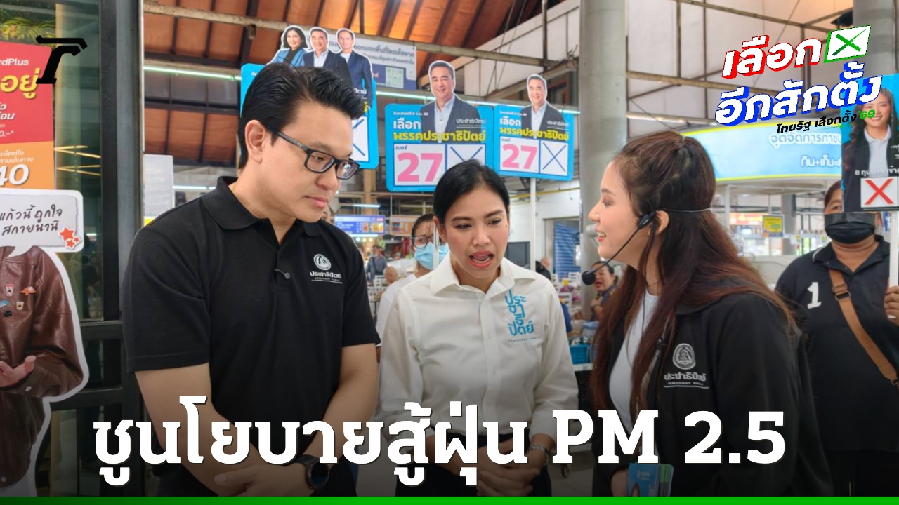 “สกลธี” ควงคู่ “เนเน่ รัดเกล้า” ลุยตลาดยิ่งเจริญ ช่วยผู้สมัครหาเสียง เตือนประชาชนสวมหน้ากากเหตุ ค่าฝุ่นส้ม-แดงอันตราย พร้อมชูนโยบายประชาธิปัตย์ สู้ฝุ่น PM 2.5 เร่งผลักดันกฎหมายอากาศสะอาด