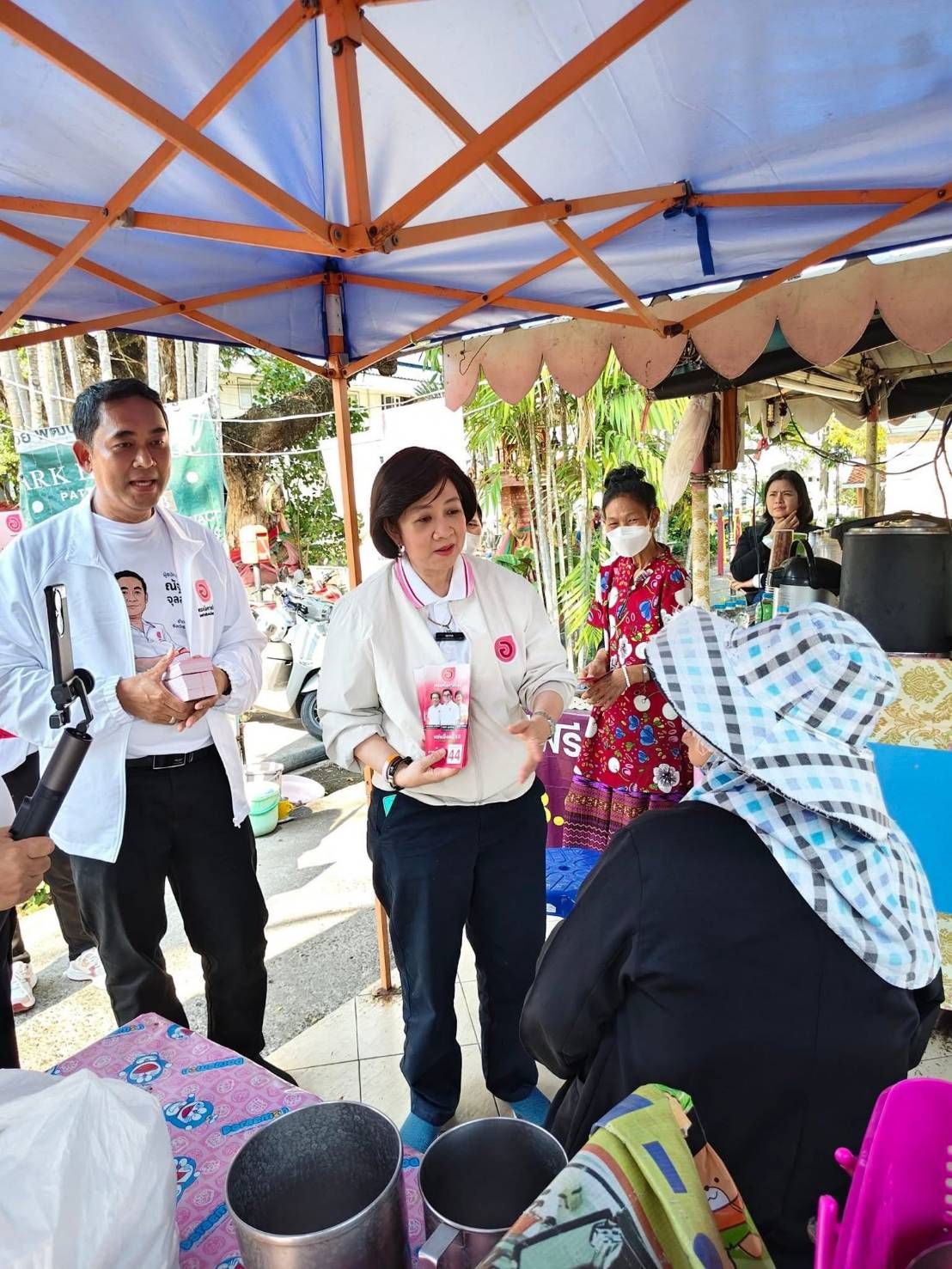 นอกจากนี้ ยังได้รับฟังปัญหาราคามะพร้าวตกต่ำ เหลือเพียงลูกละประมาณ 2 บาท นายณัฐภัทร์ ได้ศึกษาข้อมูลและแนวทางแก้ไขมาอย่างต่อเนื่อง โดยเสนอการใช้นวัตกรรมการปลูกและการแปรรูป เพื่อเพิ่มมูลค่าและช่วยให้เกษตรกรขายผลผลิตได้ในราคาที่สูงขึ้น รวมถึงปัญหากลุ่มผู้สูงอายุที่ต้องการจำหน่ายงานฝีมือและผลิตภัณฑ์ชุมชน ซึ่งดร.อนุสรี ระบุว่าจะผลักดันการอบรมด้านการตลาดออนไลน์ เพื่อเปิดช่องทางรายได้ใหม่ให้กลุ่มดังกล่าว
