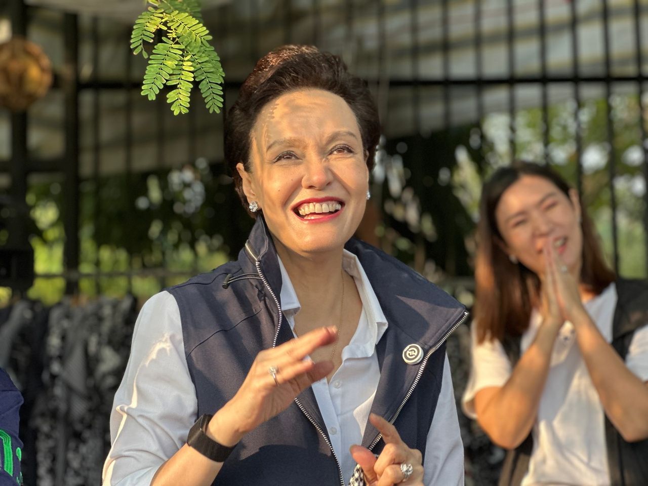 ทั้งนี้ นางศุภจียังได้อุดหนุนกระเป๋าผ้าลายดอกกุหลาบ ราคา 100 บาทจากแม่ค้า โดยบอกว่าตนได้กระเป๋าใส่โทรศัพท์แล้ว