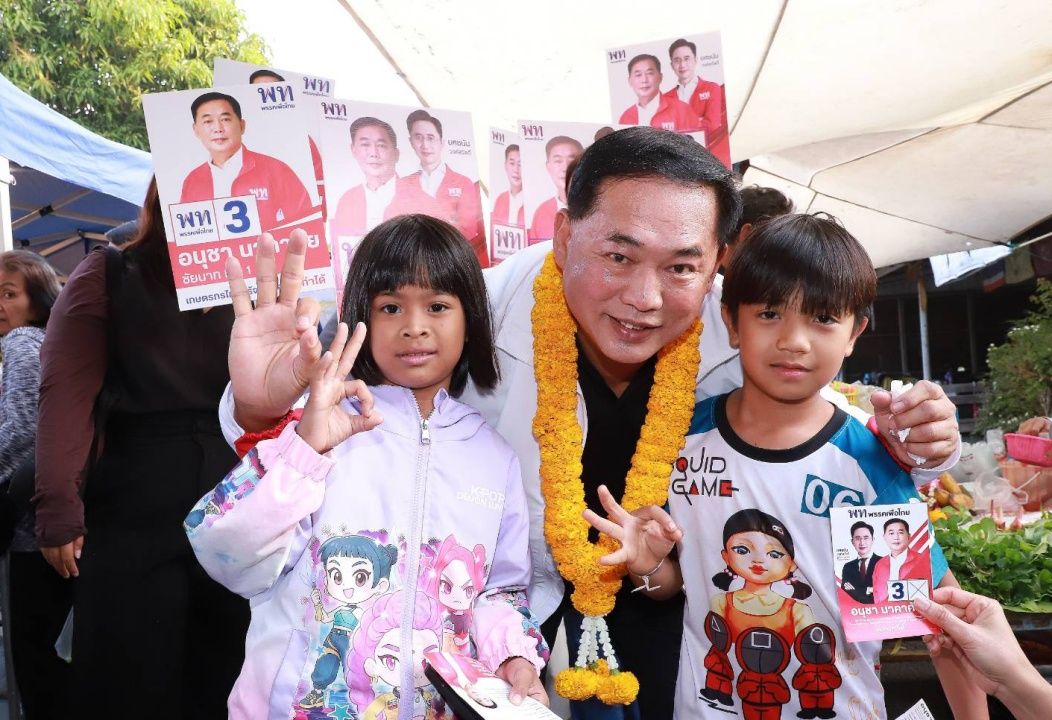 “อนุชา” ผู้สมัคร สส.ชัยนาท พรรคเพื่อไทย ลงพื้นที่พบปะประชาชนตลาดเช้าบางกระเบื้อง ชูนโยบายพรรคเพื่อไทยแก้ปัญหาปากท้อง ขณะที่คนในพื้นที่เชียร์ ให้ได้เป็นรัฐบาลมาแก้ไขปัญหาความยากจน