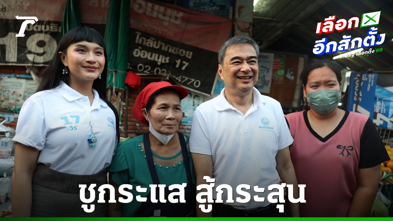 “อภิสิทธิ์” ลงพื้นที่ย่านพระโขนง-บางนา ช่วยผู้สมัคร สส.กทม. “วีร์ ศรีวราธนบูลย์” หาเสียง ประกาศศักดิ์ศรี ปชป. ชูกระแส สู้กระสุน ทำการเมืองสุจริต ขณะแฟนคลับอ้อนอยากได้นายกฯ สุจริตคนที่ 33