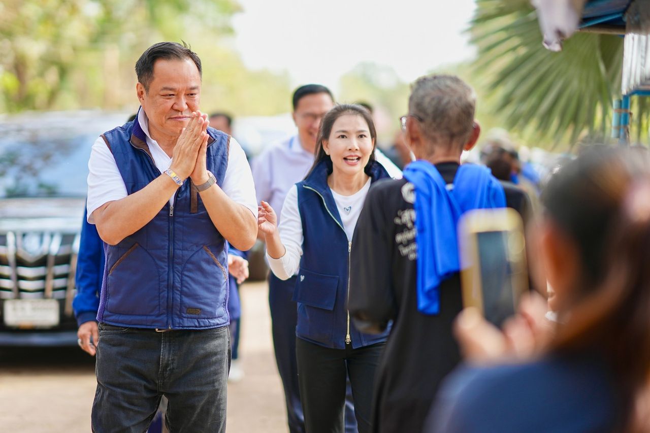 โดยทันทีที่นายอนุทินเดินทางถึง ชาวบ้านได้นำพวงมาลัยดอกดาวเรืองคล้องคอ และผ้าขาวม้าผูกเอวต้อนรับตามธรรมเนียมภาคอีสาน บรรยากาศเป็นไปด้วยความคึกคัก ท่ามกลางเพลงหาเสียงของพรรค ภท. เช่น เพลงเลือกแล้วค่ะ