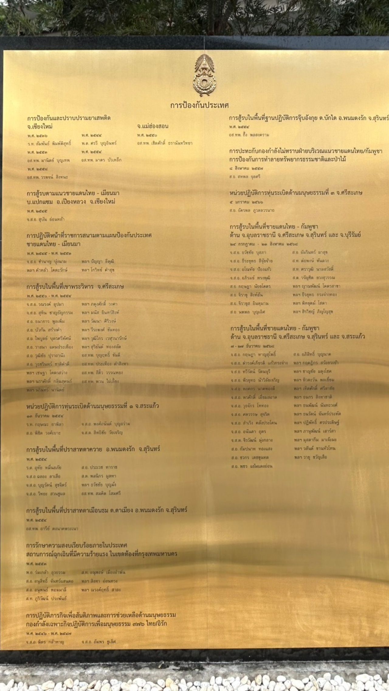 สำหรับรายชื่อทั้งหมดถูกจารึกลงในส่วนของสมรภูมิป้องกันประเทศทั้งหมด 43 ชื่อ แบ่งเป็นห้วงแรกระหว่างวันที่ 24 กรกฎาคม -23 สิงหาคม 2568 จำนวน 16 นาย จากการสู้รบในพื้นที่จังหวัดอุบลราชธานี ศรีสะเกษ สุรินทร์ และบุรีรัมย์ และห้วงที่ 2 จากการสู้รบใน 4 พื้นที่อีสานใต้และพื้นที่ จ.สระแก้ว ระหว่างวันที่ 7 ธันวาคม -27 ธันวาคม 2568 จำนวน 27 นาย รวมนายทหารที่เสียชีวิตจากการรักษาอธิปไตย ชายแดนไทย-กัมพูชา ทั้งสองครั้ง รวม 43 นาย