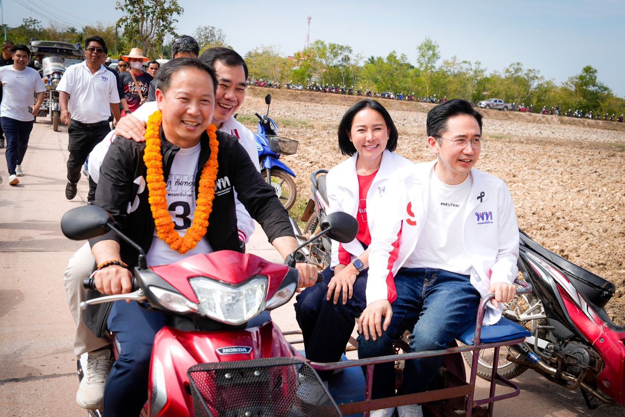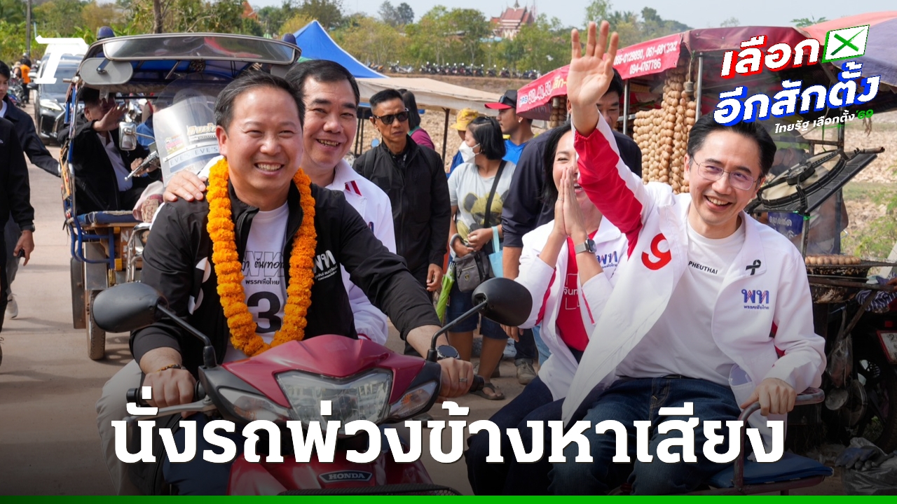 นั่งรถพ่วงข้างบุกหนองคาย อ้อนขอคะแนนเพื่อไทย ยกจังหวัด