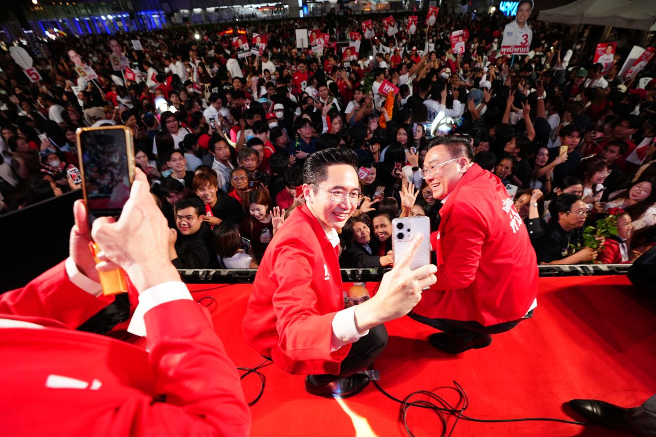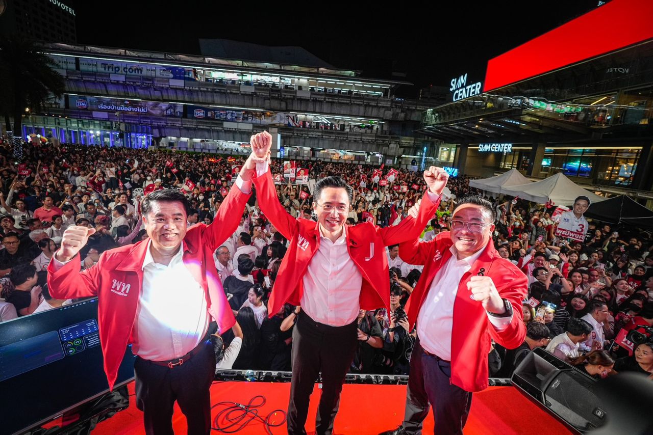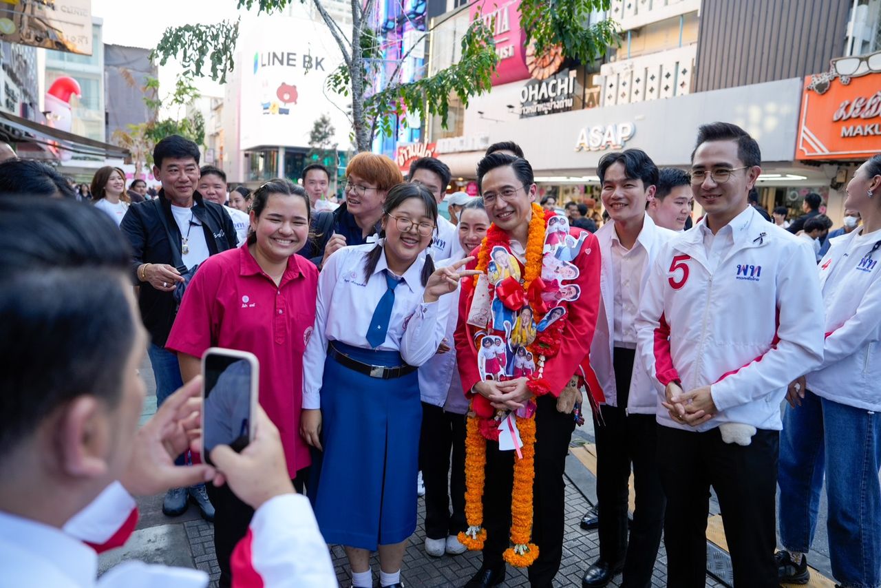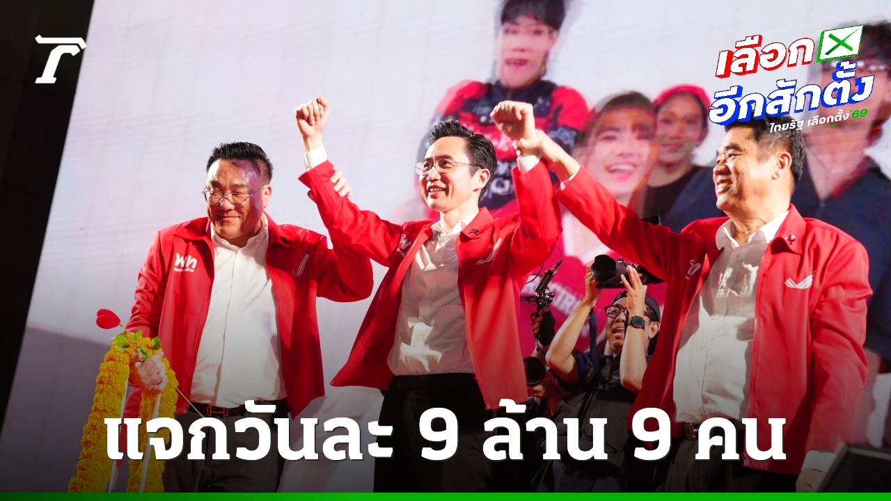 วัยรุ่นสยามแห่ถ่ายภาพ “ยศชนัน” ขึ้นปราศรัย ขอเปลี่ยนประเทศด้วยเทคโนโลยี “สุริยะ” เหน็บพรรคส้ม ไม่เอาเทาแต่เทากว่าเพื่อน ด้าน “จุลพันธ์” เปิดนโยบายลุ้นรางวัล วันละ 9 ล้าน 9 คน เตือนประชาชนเลือก “เท้ง” ได้หนูทดลองงาน