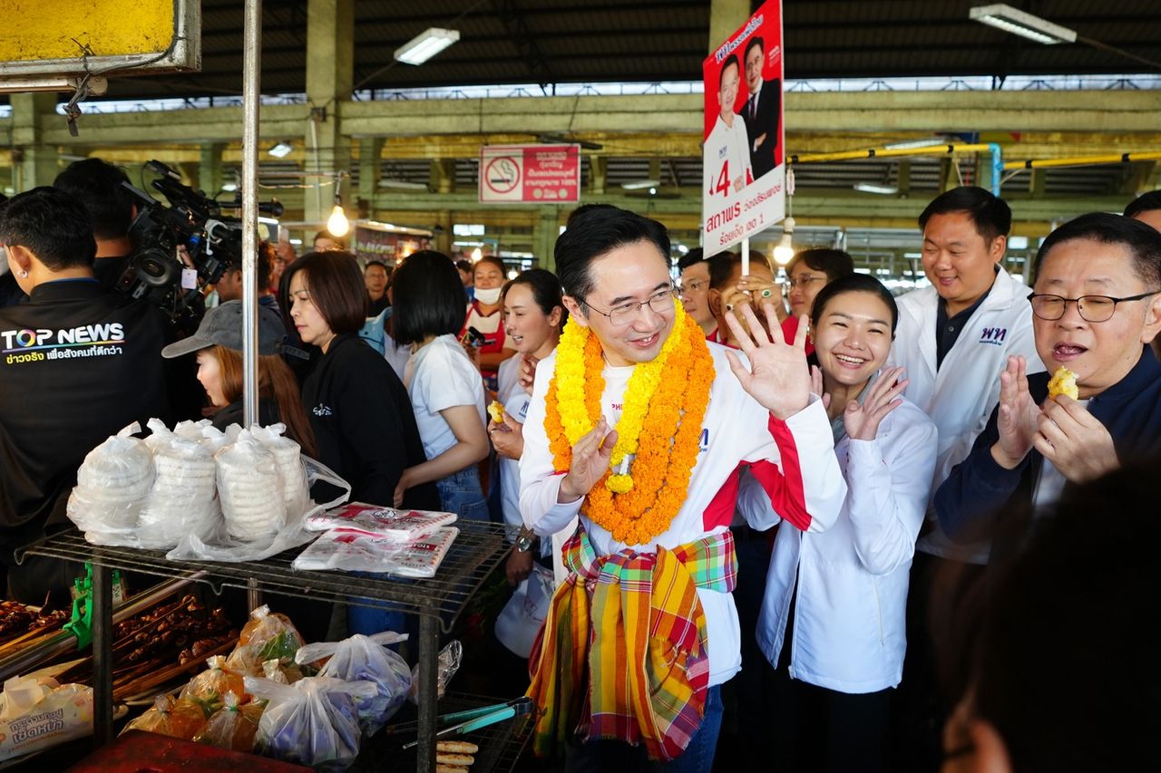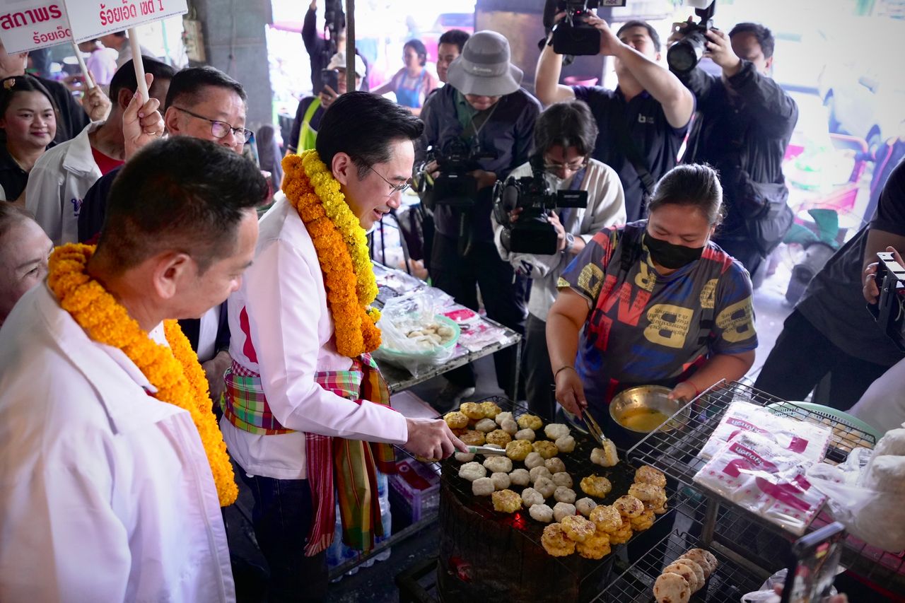 “ยศชนัน” ยกทีมเพื่อไทยลุยอีสาน ขอคะแนนเสียงชาวร้อยเอ็ด เดินตลาดทุ่งเจริญ ชิมข้าวจี่ เจอชาวบ้านชม “หล่อมาก”