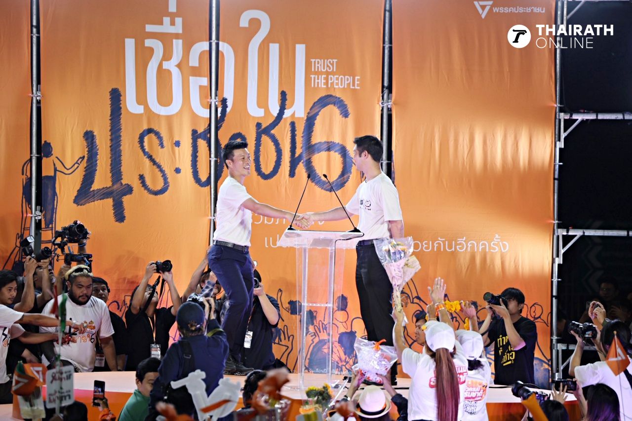 “ธนาธร” ลั่น รัฐบาลประชาชนเป็นไปได้ 8 ก.พ. ขอกา พรรคประชาชนให้ถล่มทลาย ด้าน “เท้ง” ชวนเขียนประวัติศาสตร์หน้าใหม่ให้ประเทศ ให้คำมั่น เป็นนายกฯ ที่ซื่อสัตย์ ทำเพื่อประโยชน์สูงสุดของประชาชน