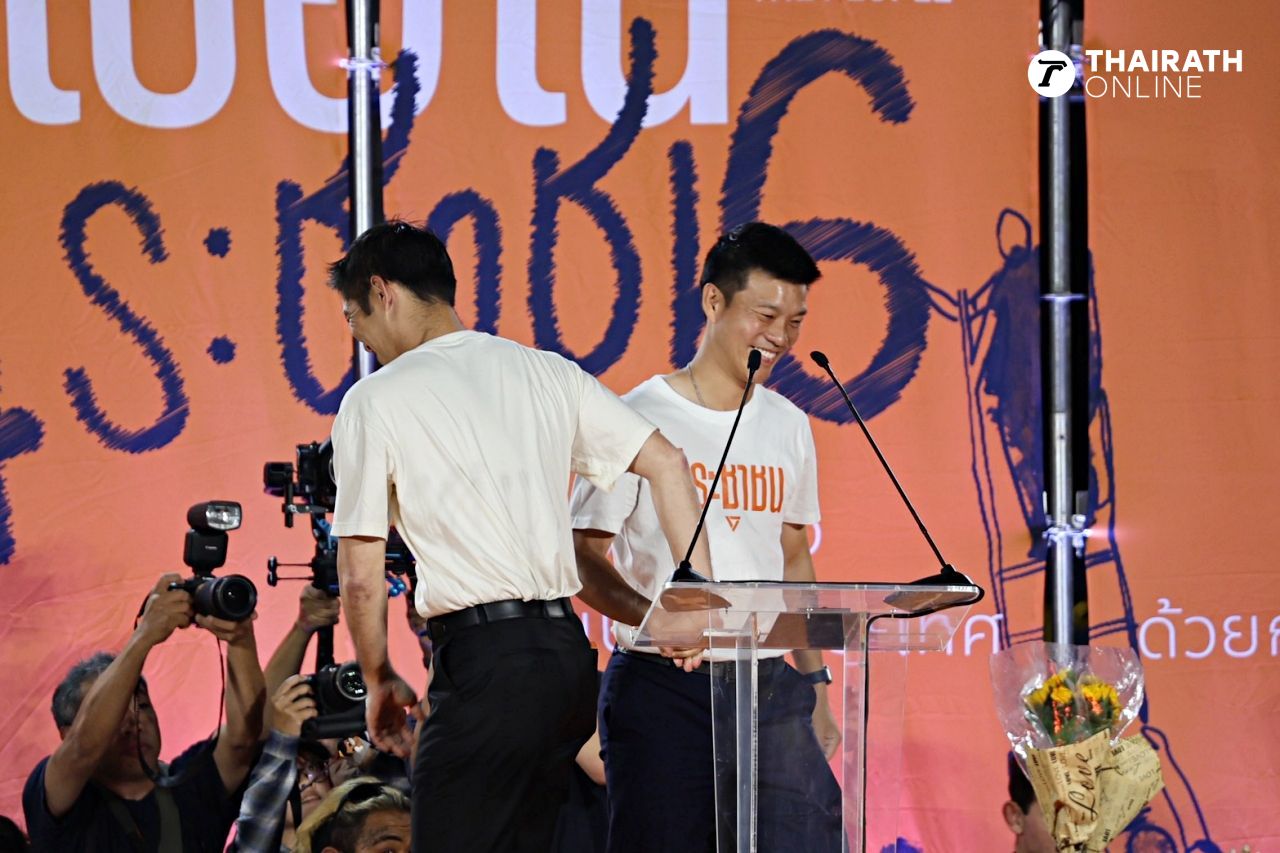 โดย นายธนาธร ยังได้กล่าวอีกว่า กำลังใจของทุกคนเป็นแรงผลักดันให้เดินไปข้างหน้า จากนั้นได้แนะนำ นายณัฐพงษ์ เรืองปัญญาวุฒิ หัวหน้าพรรคประชาชน และจะเป็นนายกรัฐมนตรีคนต่อไปของประชาชนทุกคน
